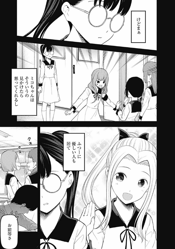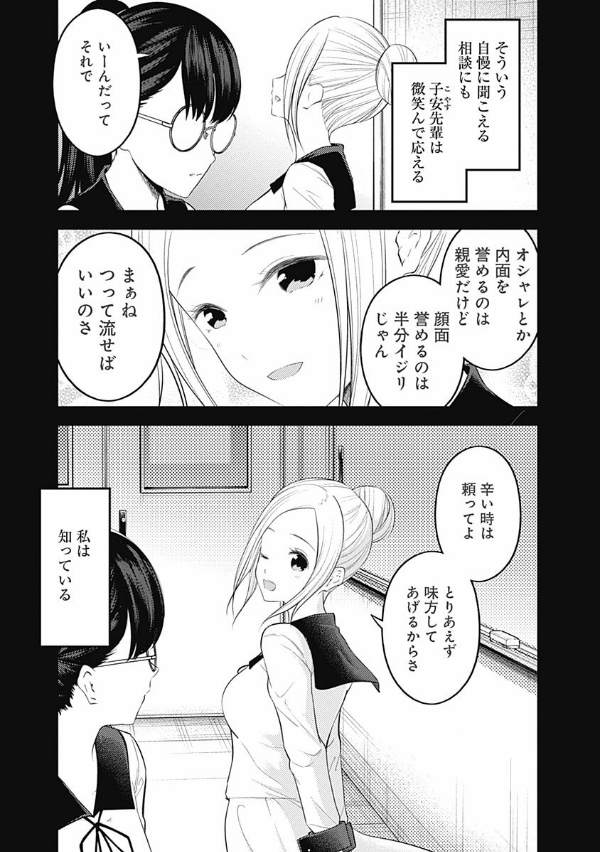 「恋愛は告白した方が負けなのである!」 エリートの集う秀知院学園生徒会で出会った会長・白銀御行と副会長・四宮かぐや…。この両想いであるはずの天才2人が、互いに相手に惚れさせ、相手から告白させようと日常の全てで権謀術数の限りを尽くす、新感覚のラブコメ!! …だったはずの2人も付き合い始め、時はバレンタインが控える2年生の3学期!! 石上優も、想いを寄せる先輩子安つばめからチョコを貰えるか、期待と不安が交錯する日々を過ごしていた。一方、己の想いに少しずつ気が付き始めている伊井野ミコはどう振る舞って良いのか悩んでおり…。それぞれの思惑を胸にバレンタイン当日を迎える!! そして、石上&藤原の誕生日なども過ごしつつ、卒業式も間近に迫る──。