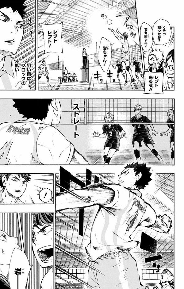 青葉城西との3回戦。苦戦する烏野は影山に代わり菅原を投入。誰よりもコートの外からチームを見続けた男の采配が、徐々に流れを引き寄せ始める! しかし、敵エース及川のサーブには攻略の糸口が見つからず!?