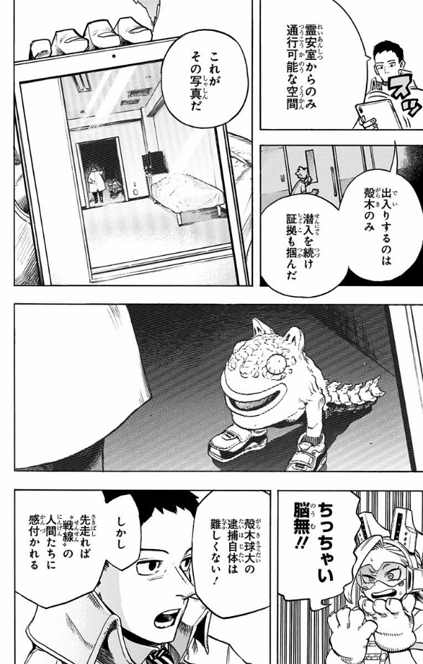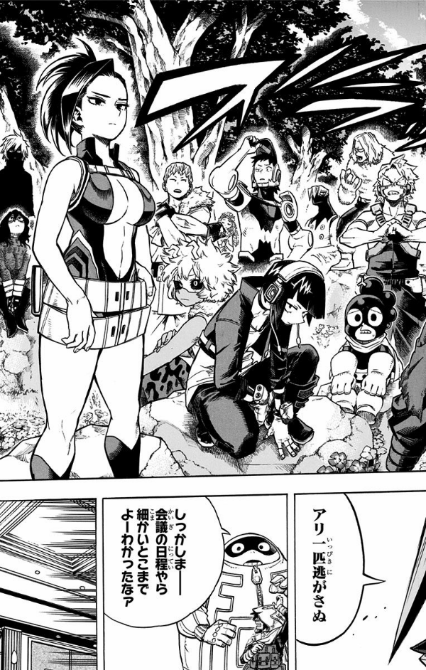 ついにヒーローによる一斉襲撃作戦が始まる。潜入から時間は掛かったが、全てはこの瞬間、確実に「超常解放戦線」を制圧するんだ! 子どもの頃から憧れていたヒーローみたいにみんなの為、俺は誰よりも速く飛んでいく! “Plus Ultra”!!