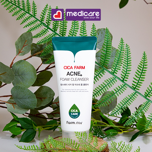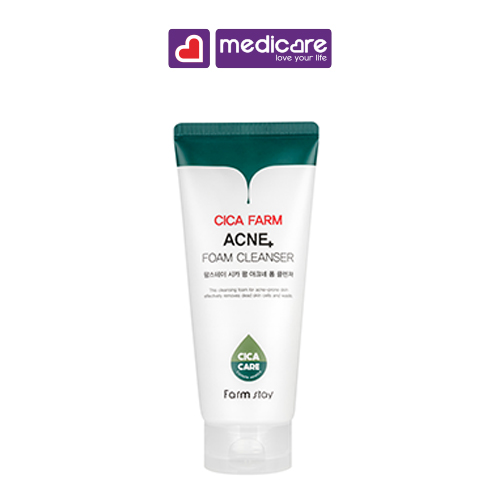 Sữa Rửa Mặt FARMSTAY Cica Farm Ngừa Mụn 180ml   THÔNG TIN SẢN PHẨM: • Đơn vị tính và Quy cách đóng gói: Một Tuýp – 180ml. • Nước xuất xứ: sản xuất tại Hàn Quốc.   CÔNG DỤNG: • Sữa rửa mặt dành cho da mụn, giúp làm sạch hiệu quả tế bào chết và bụi bẩn, kiểm soát bã nhờn. • Chiết xuất Centella Asiatica (rau má) giúp làm dịu da. • Phức hợp thảo dược và chiết xuất thực vật cũng giúp giữ cho làn da của bạn khỏe mạnh và hoàn hảo.   HƯỚNG DẪN SỬ DỤNG: • Lấy một lượng vừa đủ ra tay và xoa lên tay để tạo bọt. Nhẹ nhàng massage sản phẩm trên da làm sạch hoàn toàn. Sau đó rửa sạch bằng nước ấm.   LƯU Ý: • Ngừng sử dụng và hỏi ý kiến bác sĩ nếu xuất hiện các triệu chứng như đốm đỏ, ngứa hoặc sưng tấy. • Không sử dụng trên vết thương hở hoặc vùng da bị trầy xước. • Để xa tầm tay trẻ em.     Hướng dẫn bảo quản: Bảo quản nơi khô ráo, nhiệt độ dưới 35°C, tránh tiếp xúc trực tiếp với ánh nắng mặt trời.   • Chỉ sử dụng bên ngoài. • Chúng tôi luôn cố gắng đảm bảo tất cả thông tin về công dụng và hướng dẫn sử dụng của sản phẩm luôn được cập nhật đầy đủ và chính xác trên trang web. • Đọc kỹ thông tin sản phẩm trên bao bì hoặc tờ rơi hướng dẫn đính kèm trước khi dùng và chỉ được sử dụng theo như hướng dẫn.