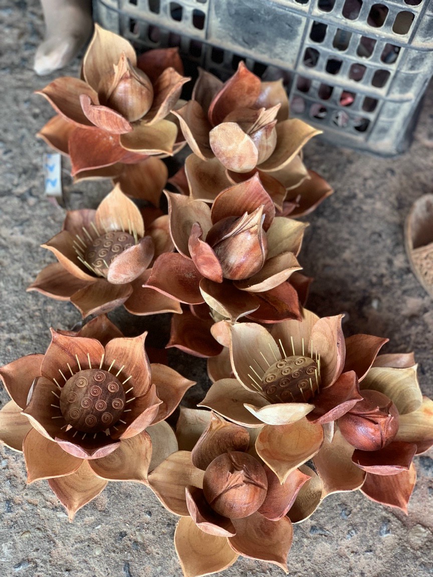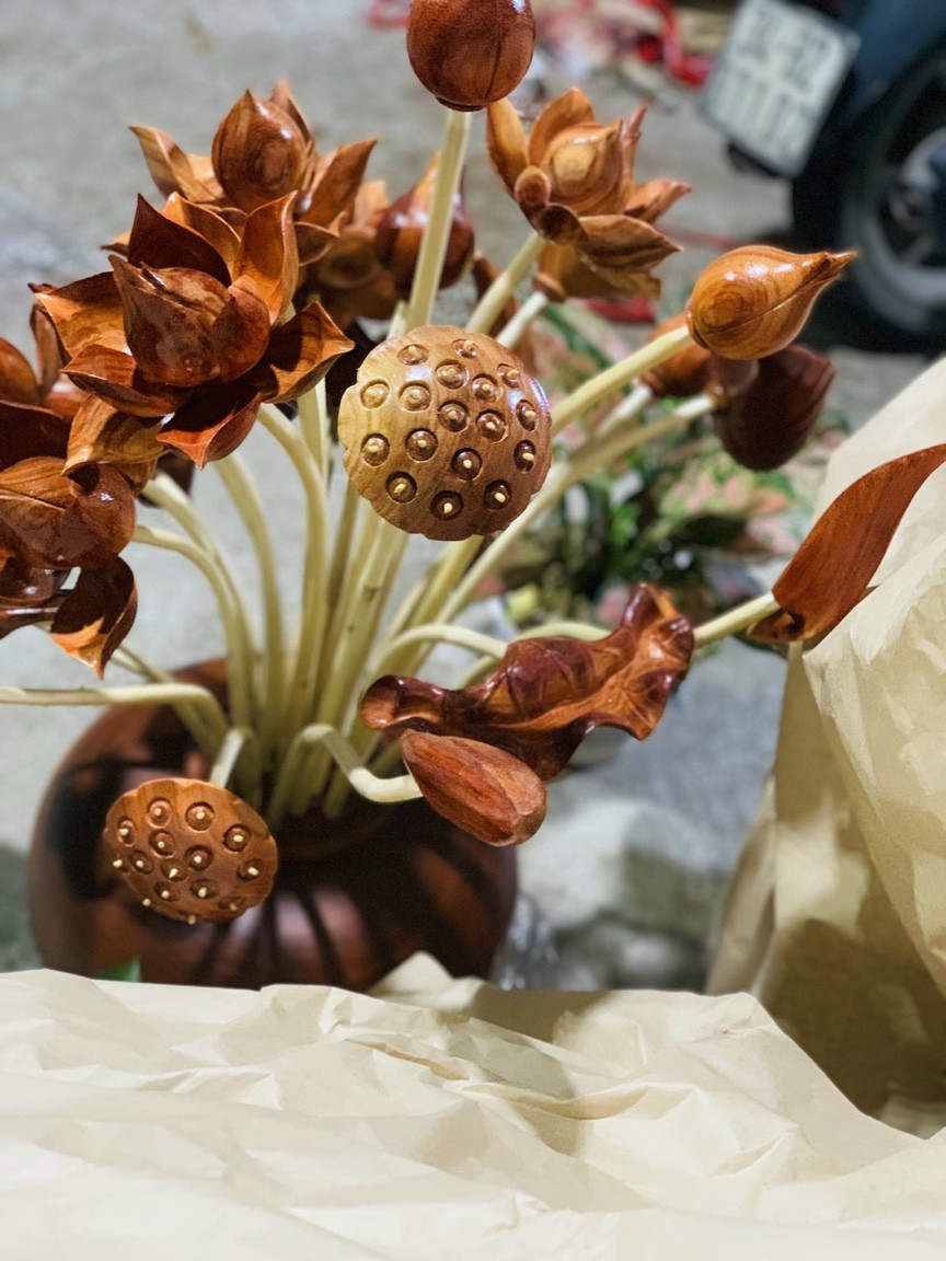 ✨1 bình hoa sen 25 cành , trang trí phòng thờ phòng khách bằng gỗ hương đỏ đẹp long lanh ,