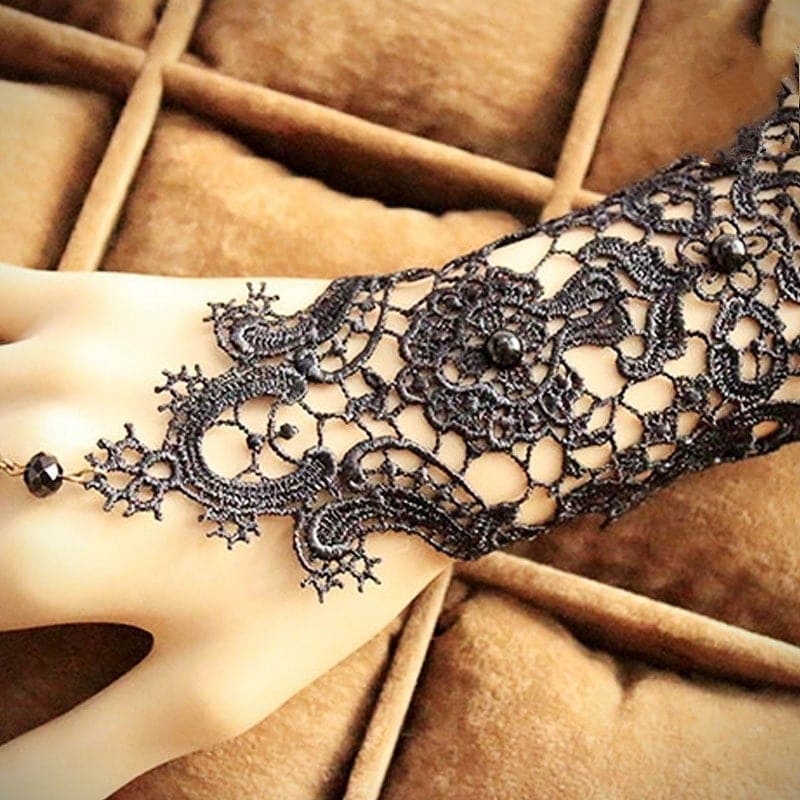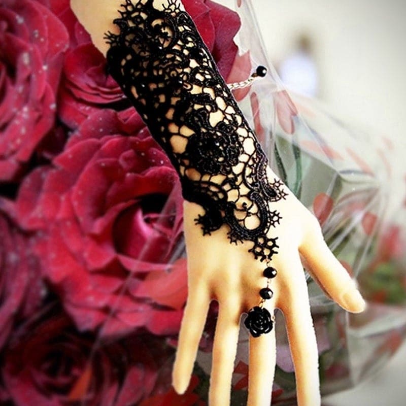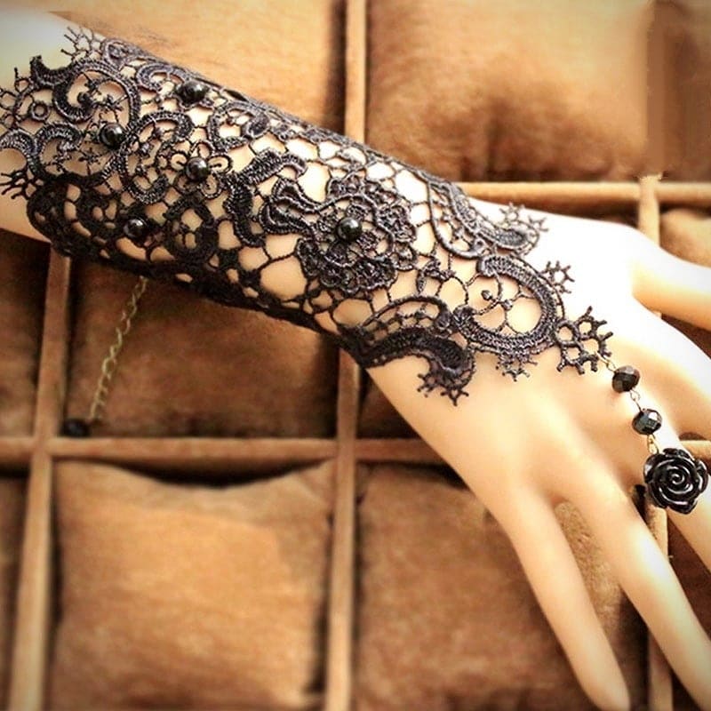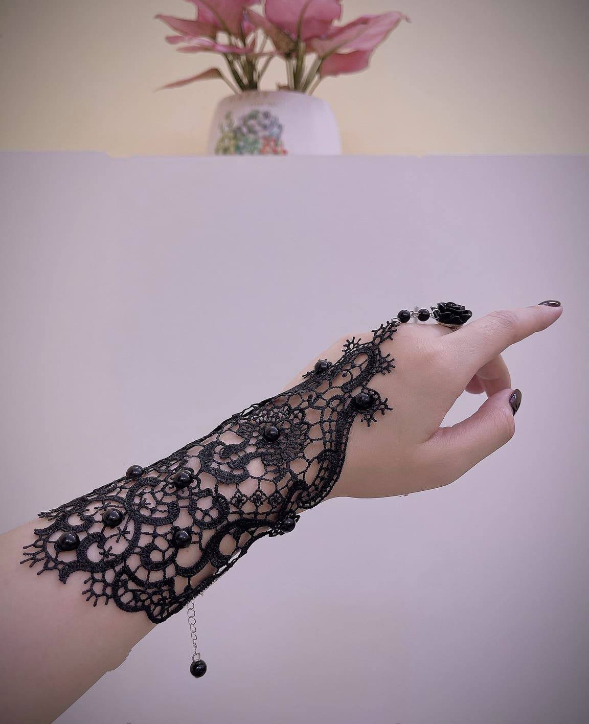 ✨1 chiếc Găng tay chất liệu ren tết cao cấp đính hạt kết hợp nhẫn hoa cho Cô dâu và Dạ hội, đi tiệc, sự kiện MS: 42214