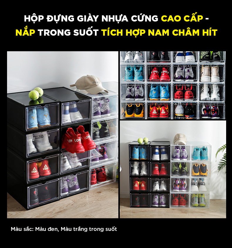 Hộp Đựng Giày Sneaker Thể Thao Nhựa Cao Cấp Nắp Cứng Trong Suốt Có Nam Châm Hít sẽ là phương án tối ưu nhất.