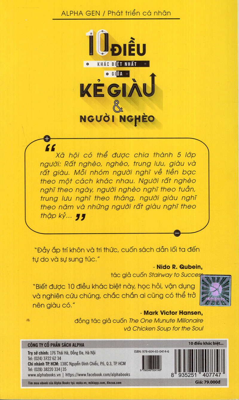 Nếu bạn sẵn sàng tham gia vào cuộc hành trình bước vào thế giới của sự sung túc và giàu có, thì cuốn 10 Điều Khác Biệt Giữa Kẻ Giàu Và Người Nghèo xứng đáng là một tấm vé hạng nhất cho bạn. Trong cuốn sách có thể tạo nên sự thay đổi lớn về cuộc sống này, doanh nhân, diễn giả nổi tiếng Keith Cameron Smith sẽ chỉ cho bạn cách thức tư duy như một triệu phú và thu về lợi nhuận nhờ tư duy “triệu phú” đó.