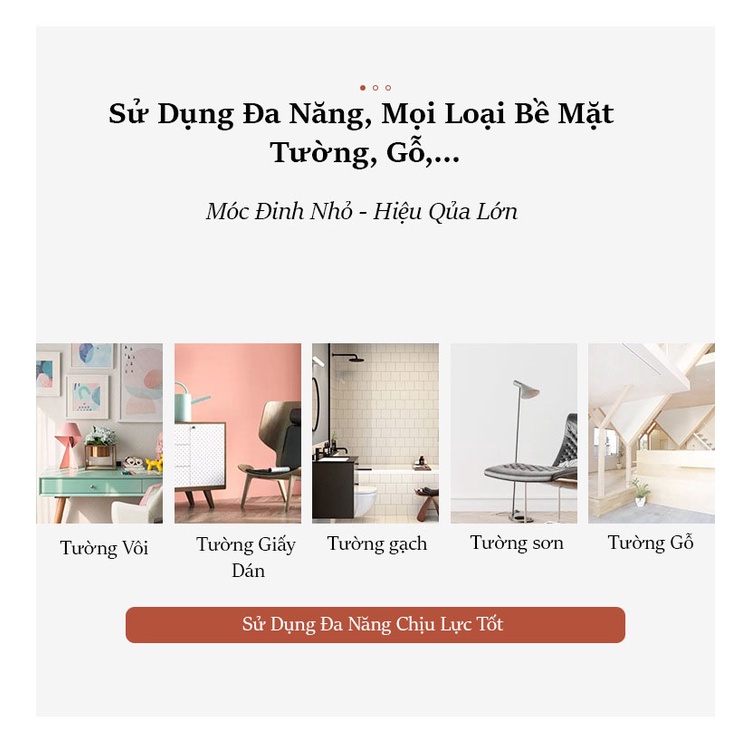 - Không cần khoan vít hay đóng đinh to gây hỏng mảng tường, không gây tiếng ồn.