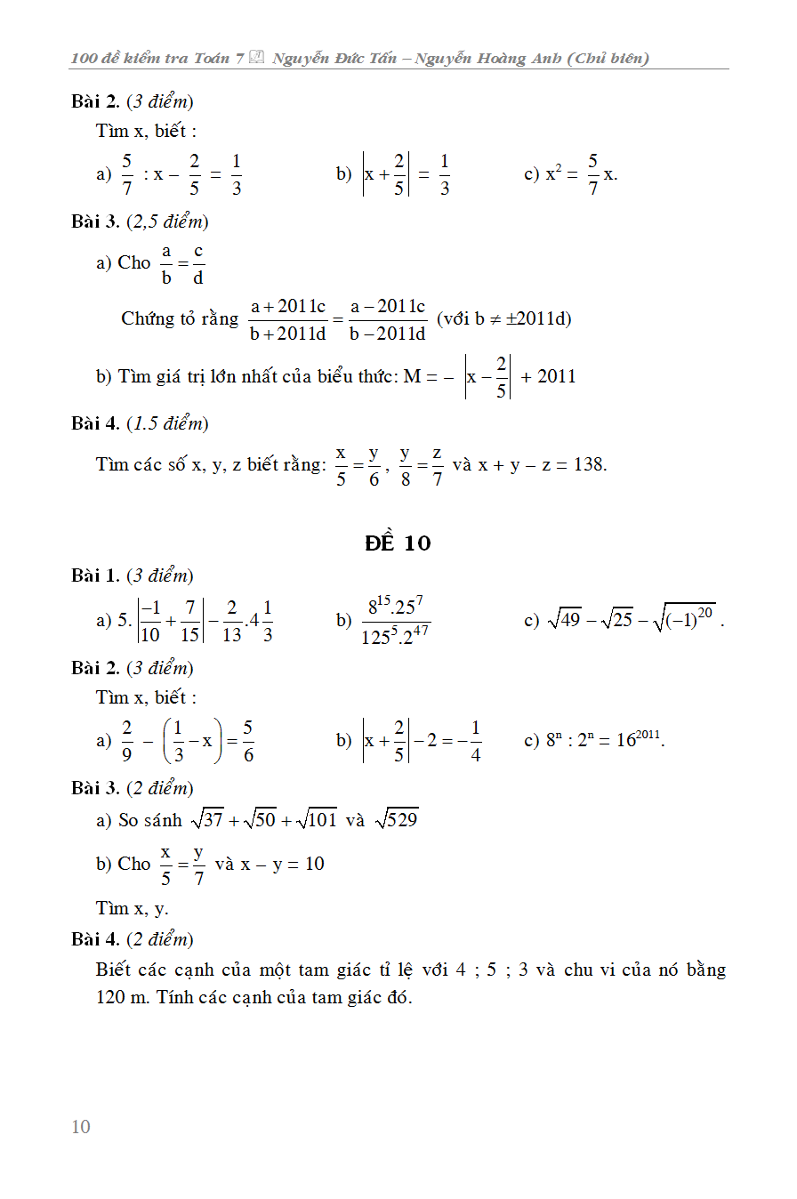 ✨ 100 Đề Kiểm Tra Toán 7 _KV