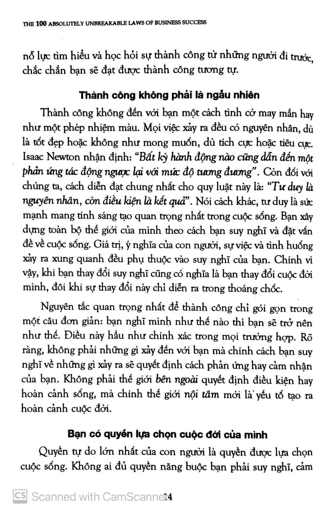 Bất kỳ quy luật nào trong cuốn sách này cũng có thể giúp bạn tiết kiệm thời gian đáng kể cũng như giúp bạn nhận ra toàn bộ khả năng tiềm ẩn của mình. Những quy luật này cũng giống như những quy luật của vật lý, toán học, cơ khí hay điện tử. Chúng đã được thử nghiệm qua thời gian, được chứng minh và áp dụng vào thực tế. Mục đích cuốn sách không bàn đến sức khoẻ, gia đình, tình yêu, sự thăng trầm của số mệnh hay bất kỳ yếu tố nào tạo nên hạnh phúc và sự thoả mãn cá nhân mà hoàn toàn chỉ đề cập đến những quy luật còn mãi với thời gian để thành công trong kinh doanh.