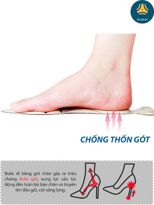 Công dụng tuyệt vời: chống trầy gót sau bàn chân khi mang giày cao gót, giày búp bê; chống thốn gót chân; giảm đau gang bàn chân; mang lại cảm giác êm chân tuyệt đối.