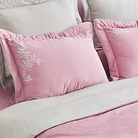 VỎ GỐI NẰM EVERON ESPM 21012 . Chất liệu : Bamboo & Modal Kích Thước : 45*65cm . Thiết kế Những nhánh lá dương sỉ mảnh mai được thêu trên nền vải hồng nhạt, kết