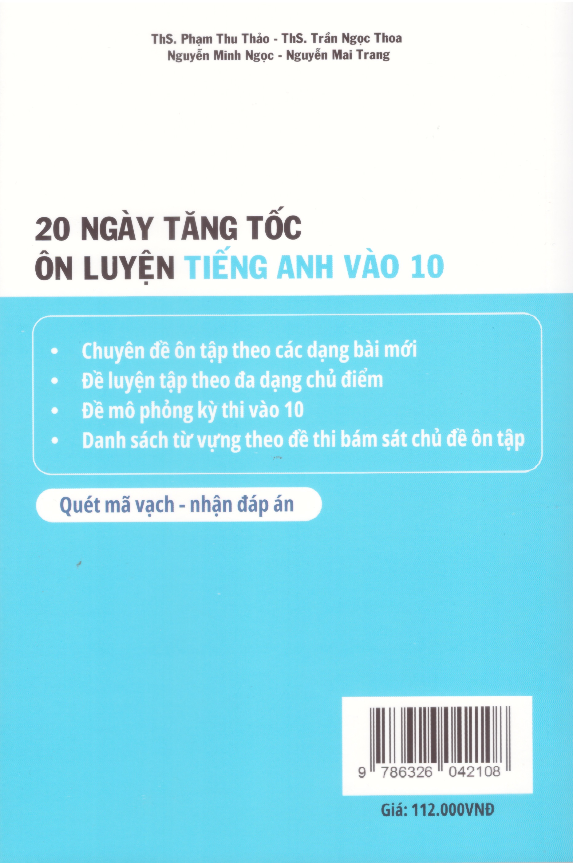 Kỳ thi vào lớp 10 đang đến gần – áp lực đè nặng, thời gian không còn nhiều. Làm sao để ôn tập đúng trọng tâm, tăng tốc hiệu quả, mà không bị “ngộp” giữa hàng núi kiến thức? Cuốn sách “20 ngày tăng tốc - Ôn luyện tiếng Anh vào 10 (Tập 1)” chính là người bạn đồng hành đáng tin cậy cho học sinh lớp 9 trong giai đoạn nước rút!