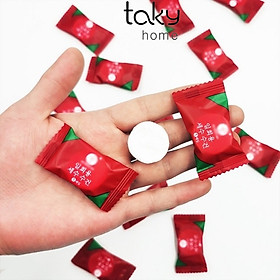Túi 20 khăn giấy nén hình viên kẹo dùng một lần tiện dụng khi đi du lịch, Khăn lau mặt Hàn Quốc nhỏ gọn đa năng  THÔNG TIN SẢN PHẨM:  - Đóng gói: Túi 20