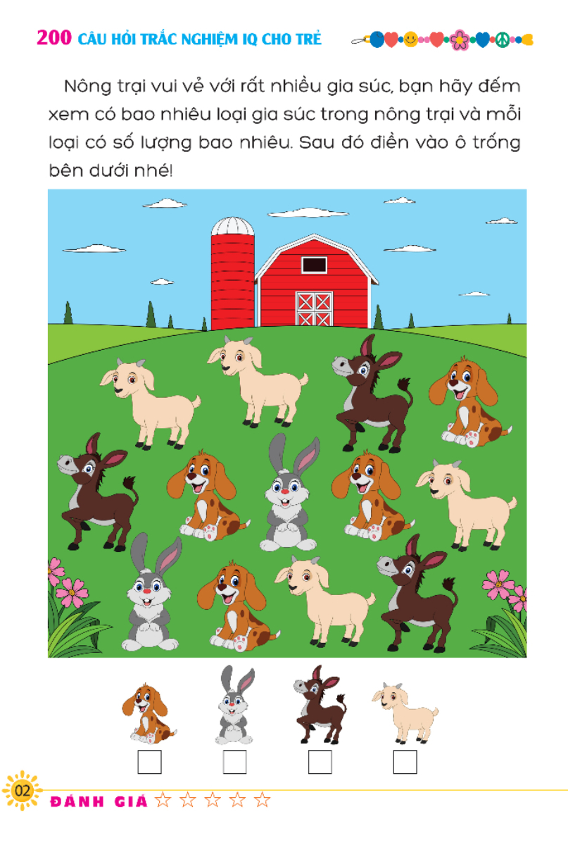 200 Câu hỏi IQ cho trẻ bao gồm những bài tập hữu ích cho việc cải thiện tư duy suy luận logic tăng cường khả năng giao tiếp phân tích thông tin của trẻ, bạn sẽ tìm thấy nhiều dạng bài tập vừa thú vị vừa đòi hỏi sự động não để hỗ trợ phát triển trí óc tư duy cho trẻ một cách hiệu quả.