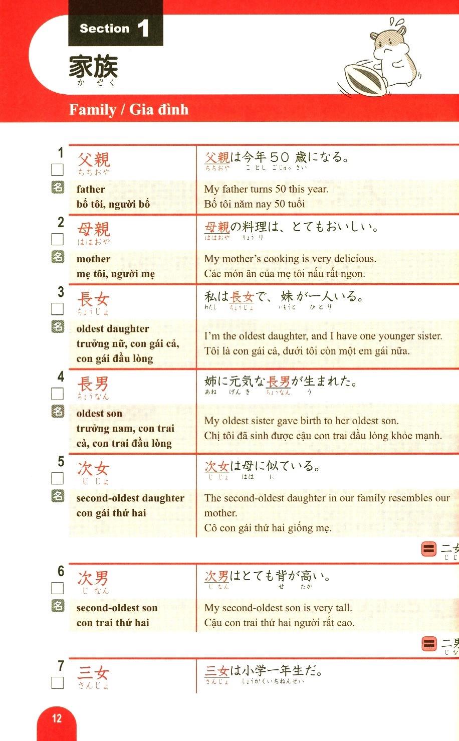 Bộ sách học từ vựng cấp độ N5 ~ N1 dành cho Kỳ thi Năng lực Nhật ngữ. Bộ sách gồm 5 cuốn: N1, N2, N3, N4, N5, tập hợp các từ vựng xuất hiện