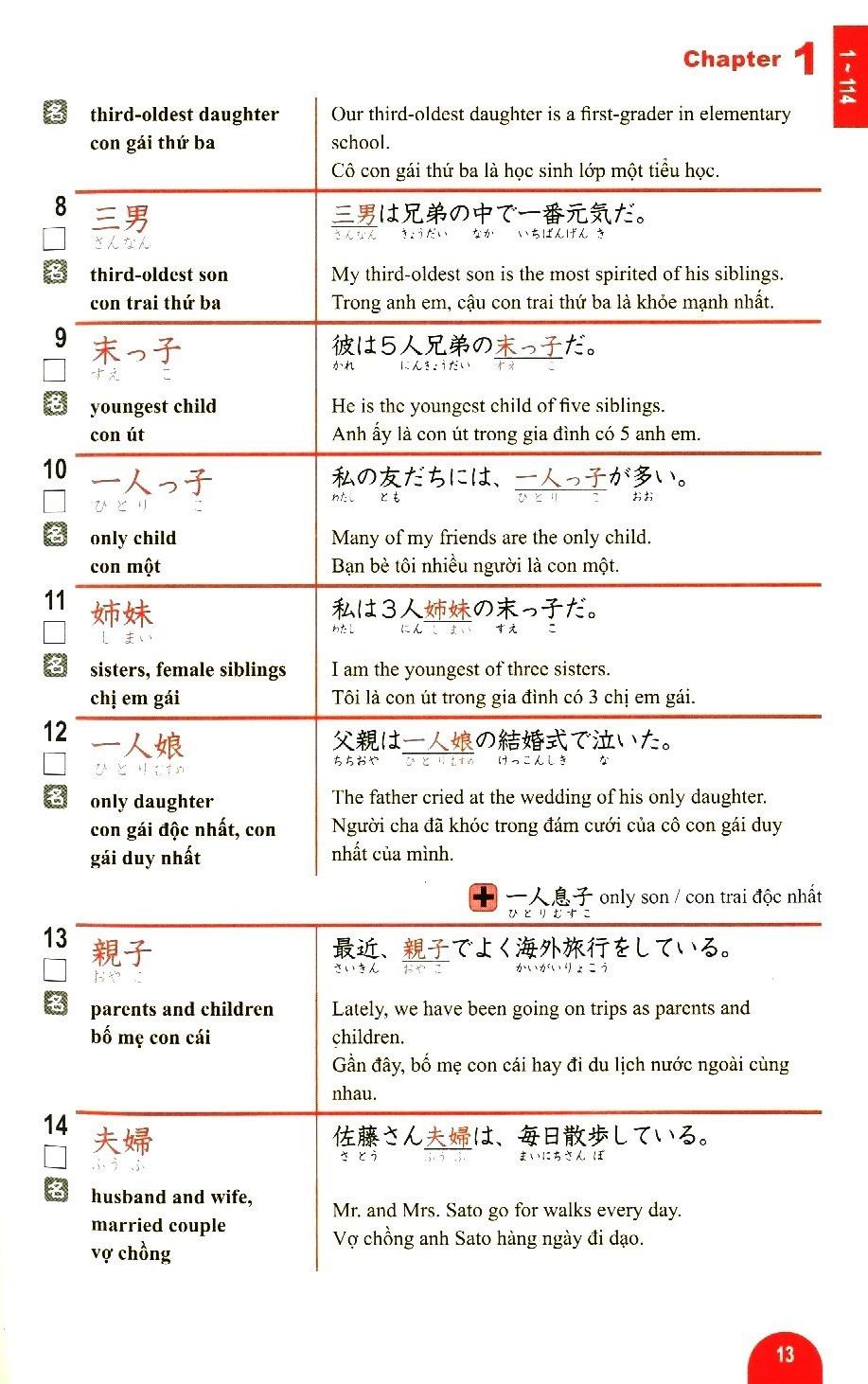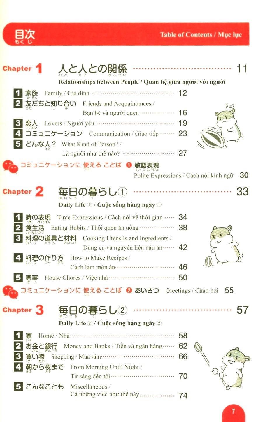 Mua tại TiktokBộ sách học từ vựng cấp độ N5 ~ N1 dành cho Kỳ thi Năng lực Nhật ngữ. Bộ sách gồm 5 cuốn: N1, N2, N3, N4, N5, tập hợp các từ vựng xuất hiện thường xuyên trong các kỳ thi Năng lực Nhật ngữ. Các từ vựng này được chia theo từng chủ đề, đi kèm các câu ví dụ. Đặc biệt bộ sách có kèm theo bản dịch Anh - Trung - Việt, rất tiện cho các bạn tự học ở nhà.