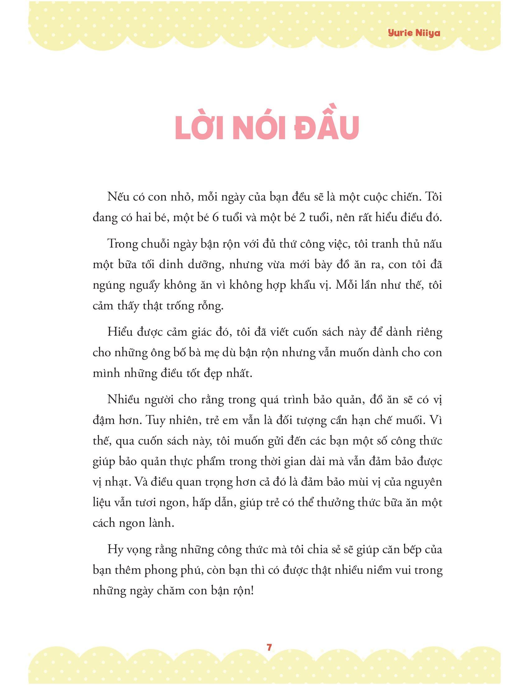 Hy vọng rằng những công thức đẹp mắt, nhanh gọn và bổ dưỡng mà tác giả chia sẻ sẽ giúp căn bếp của bạn thêm phong phú và còn bạn thì có được thật nhiều nhiều niềm vui trong những ngày chăm con bận rộn!