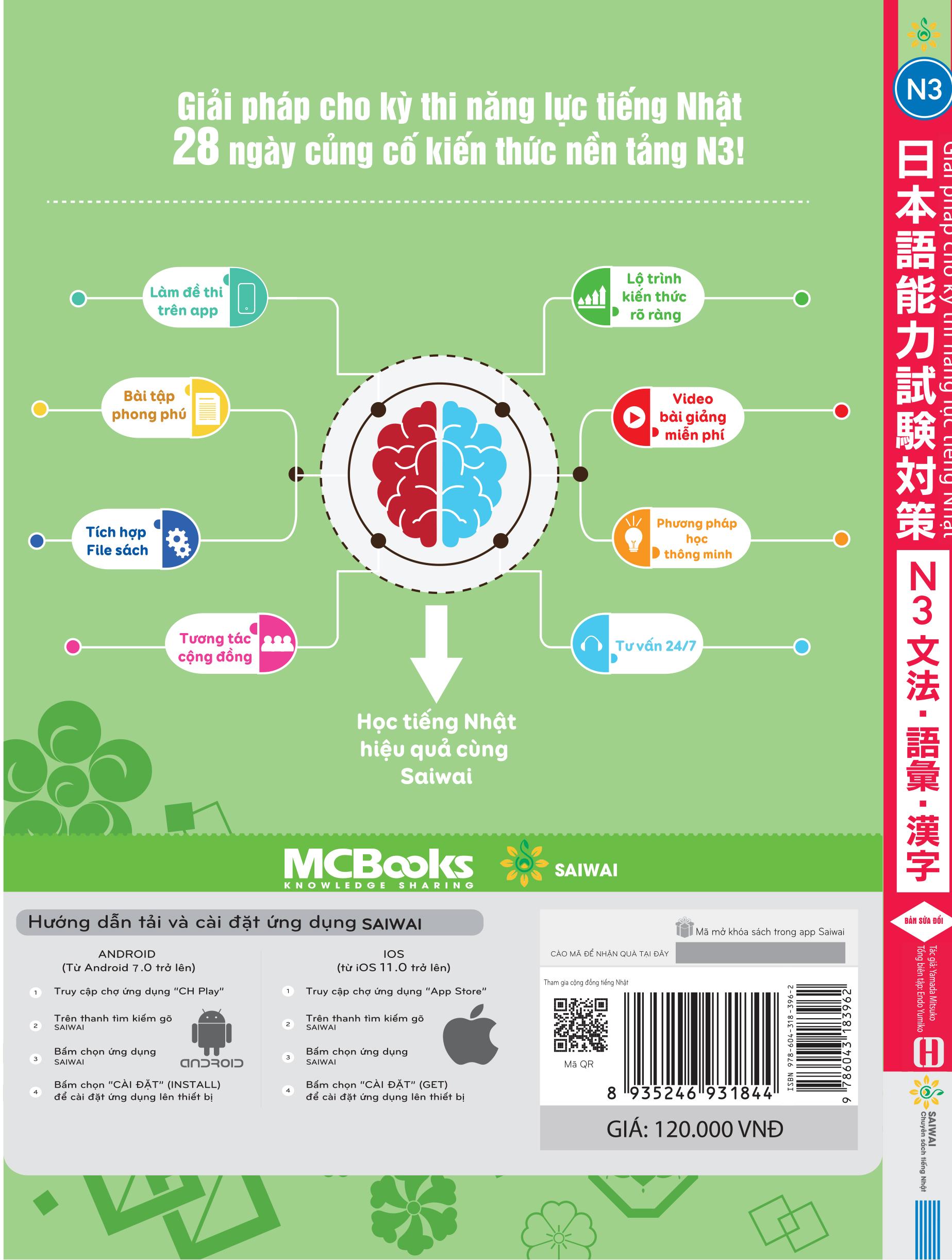 Giải Pháp Cho Kỳ Thi Năng Lực Tiếng Nhật - 28 Ngày Củng Cố Kiến Thức Nền Tảng N3 Nhà xuất bản : Nhà Xuất Bản Hồng Đức. Công ty phát hành : MCBooks. Tác