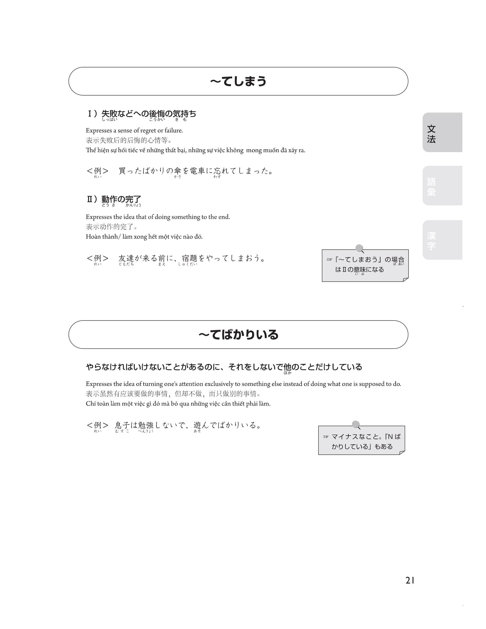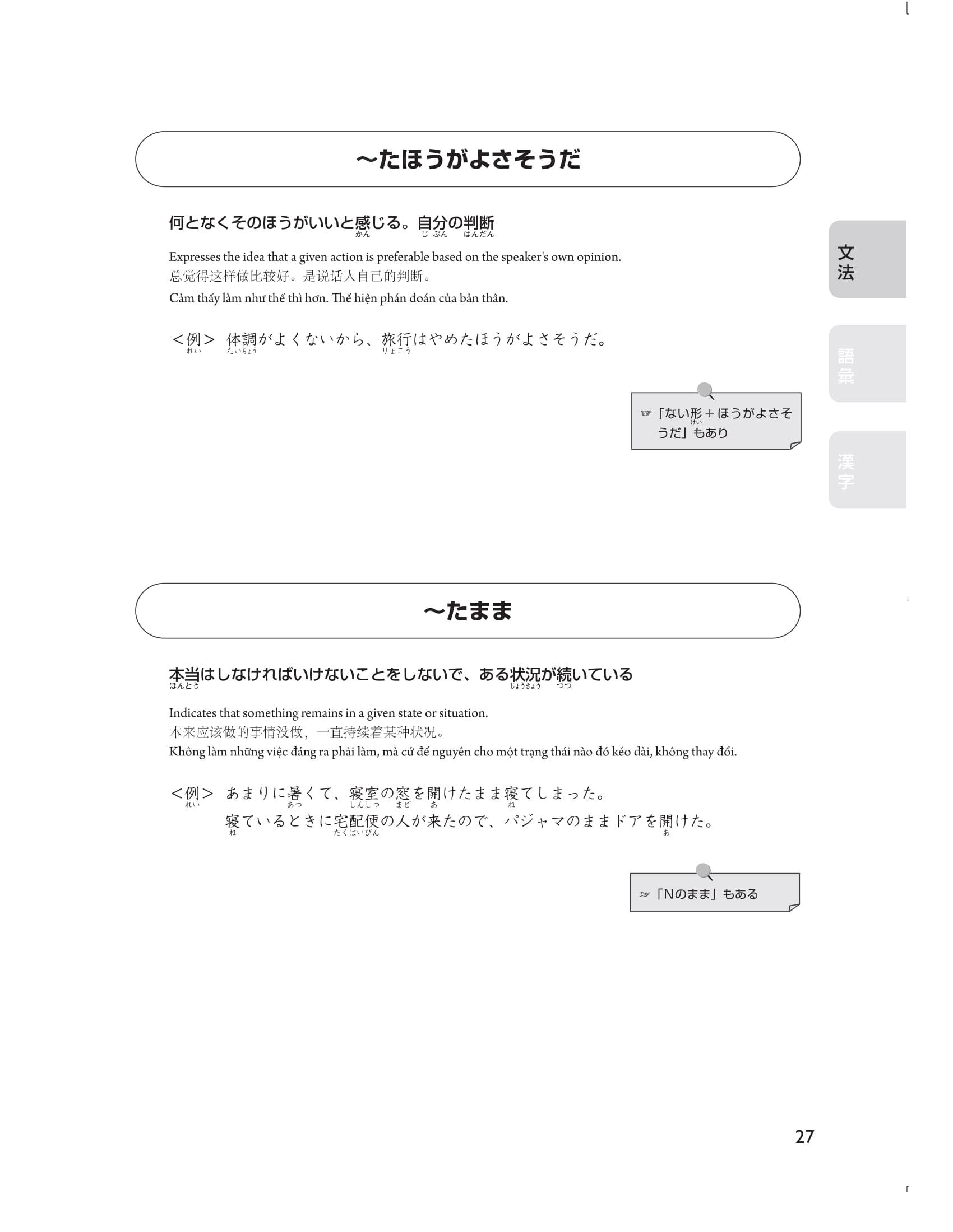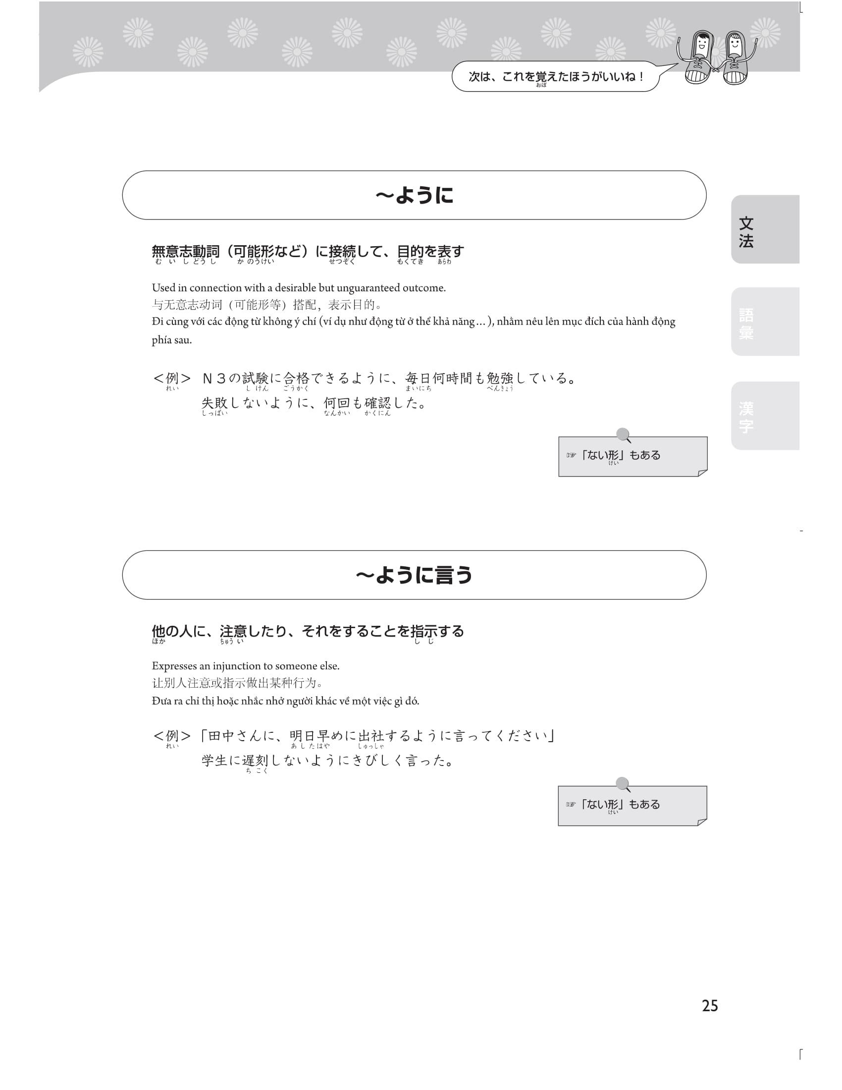 Cuốn sách này tổng hợp kiến thức về ngữ pháp, từ vựng, chữ Hán dành cho các bạn tham gia kỳ thi năng lực tiếng Nhật N3. Đây cũng là bản sửa đổi của cuốn “Giải pháp cho kỳ thi năng lực tiếng Nhật N3 – ngữ pháp, từ vựng, chữ Hán” được phát hành vào năm 2013 tại Nhật Bản.