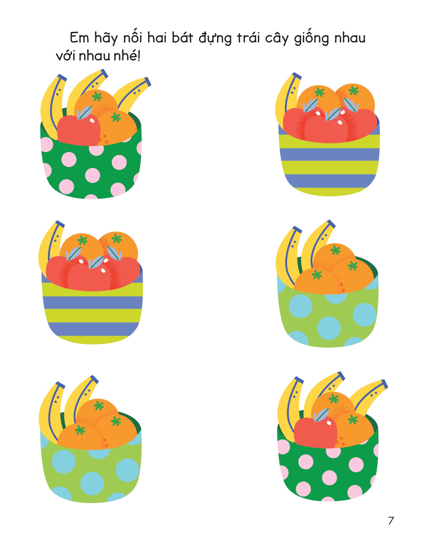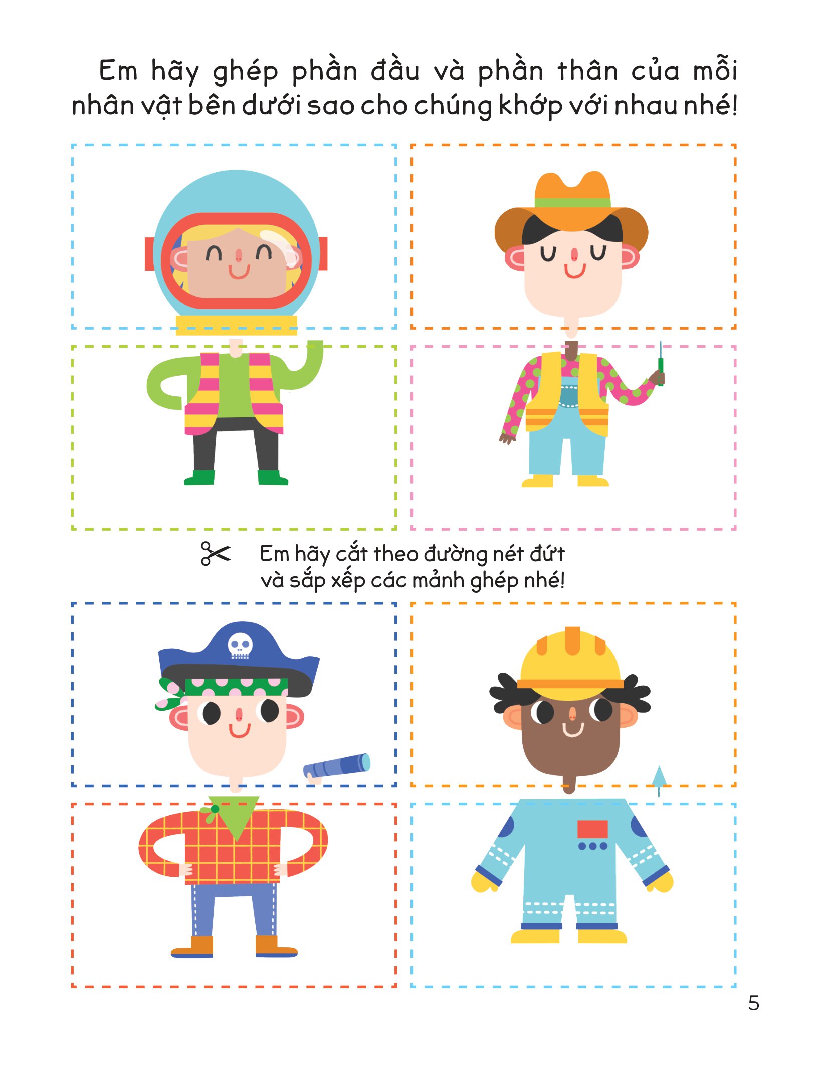 Đồng thời, các hoạt động trong sách cũng kích thích trí não của em, giúp em phát triển nhận thức thị giác, kỹ năng vận động tinh và sự phối hợp tay-mắt đấy.