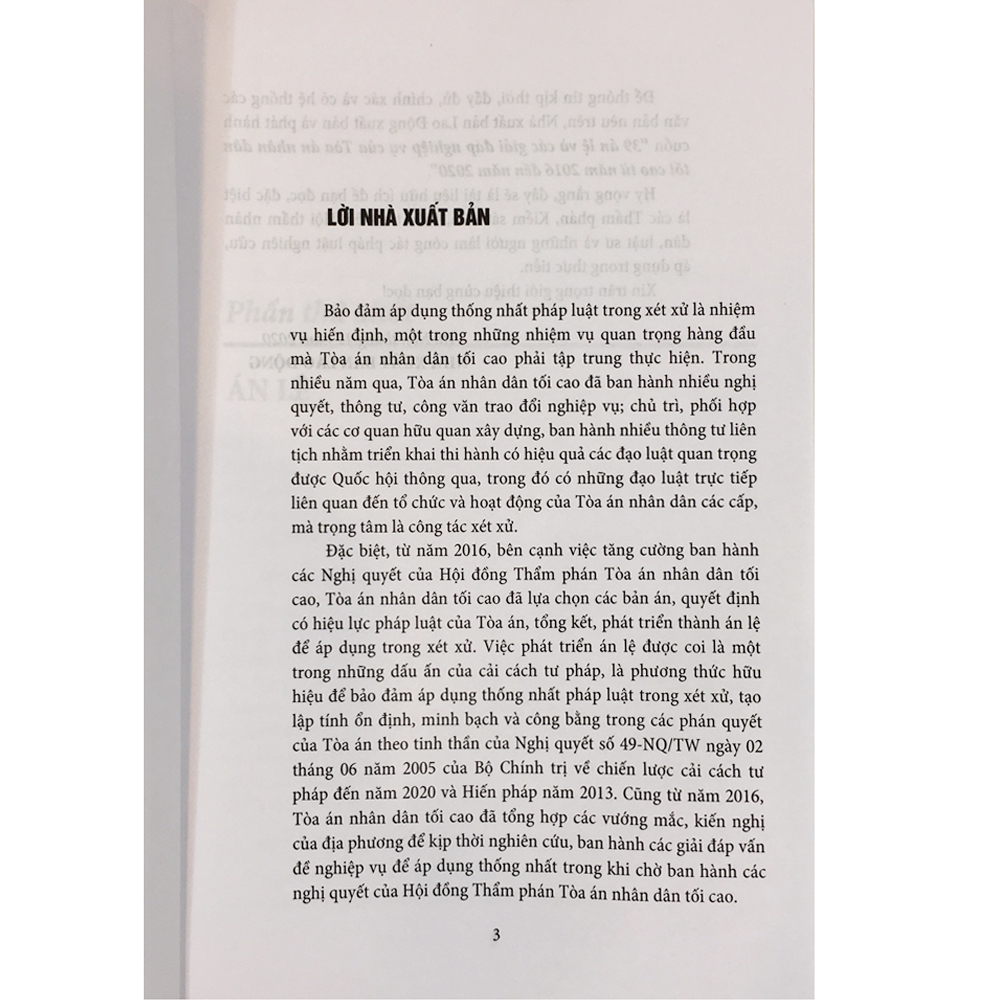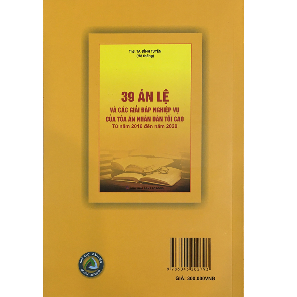 Để thông tin kịp thời, đầy đủ, chính xác và có hệ thống các văn bản nêu trên của Tòa án nhân dân tối cao, Nhà xuất bản Lao động xuất bản và phát hành cuốn sách: "39 Án lệ và giải đáp nghiệp vụ của Toà án nhân dân tối cao từ năm 2016 đến năm 2020"