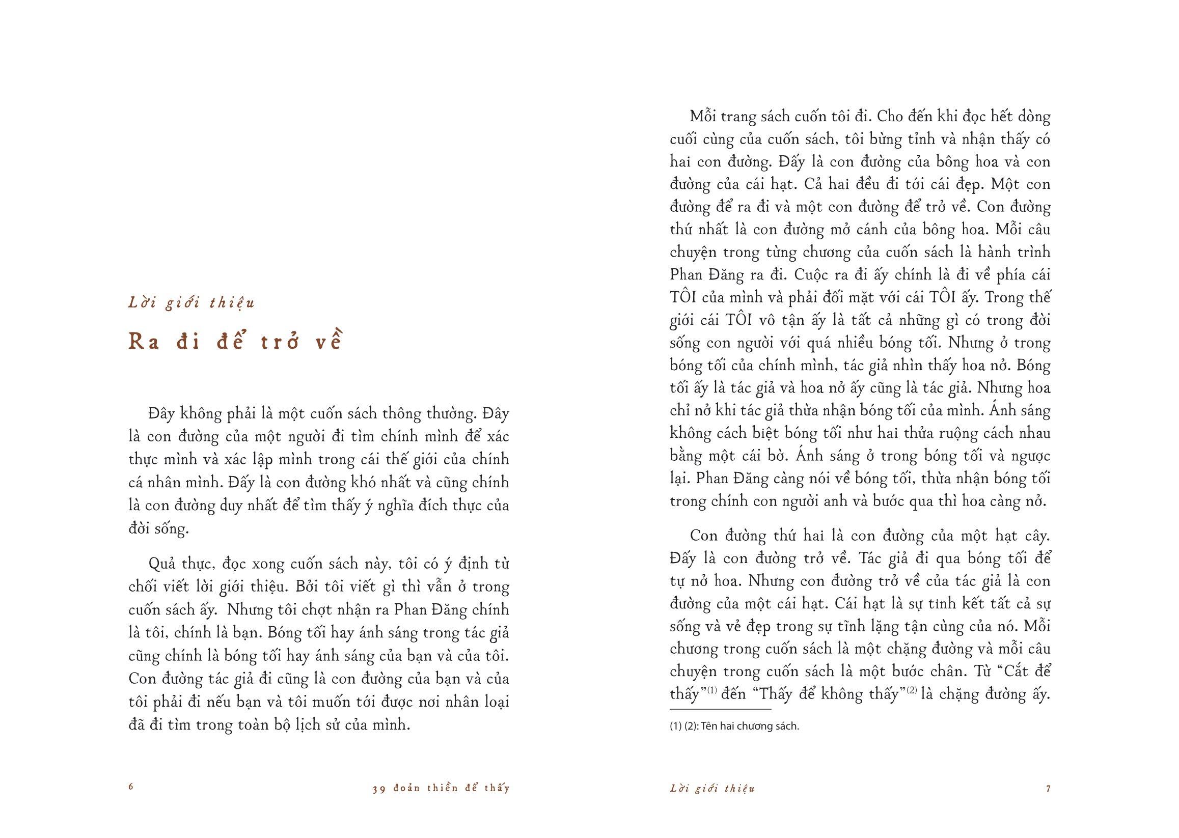 Cuốn sách cũng đánh dấu một bước chuyển trong tư tưởng của Phan Đăng, giống như một hành trình đi tìm chính m.ình. Nếu như ở những cuốn sách trước (39 Câu Hỏi Cho Người Trẻ, 39 Cuộc Đối Thoại Cho Người Trẻ), chúng ta gặp một nhà báo Phan Đăng sắc sảo trong lập luận, minh bạch trong tư duy, thì trong cuốn sách này, chúng ta sẽ gặp một tác giả Phan Đăng vẫn sắc sảo đấy, vẫn minh bạch đấy, nhưng trầm tĩnh, thận trọng và chậm rãi hơn như một người giàu trải nghiệm.