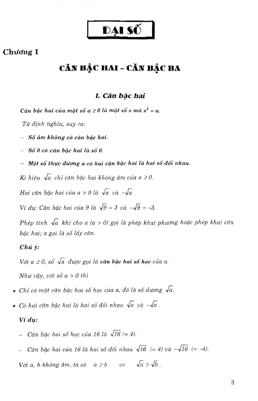 400 Bài Toán Cơ Bản Lớp 9 (Dùng Chung Cho Các Bộ SGK Hiện Hành) ĐẠI SỐ Chương I. CĂN BẬC HAI – CĂN BẬC BA I. Căn bậc hai II. Căn thức bậc hai và hằng đẳng thức VA2 = |A| III. Liên hệ giữa phép nhân (phép chia) và phép khai phương.. IV. Biến đổi đơn giản căn thức bậc hai. V. Thực hiện phép tính, rút gọn biểu thức chứa căn bậc hai. VI. Căn thức bậc ba Bài tập ôn chương I. Chương II. HÀM SỐ BẬC NHẤT