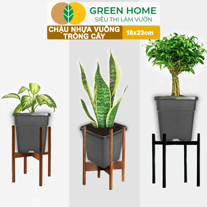 ✨5 Chậu Vuông Trồng Cây Greenhome, Nhiều Kích Thước, Nhựa Cứng, Thoát Nước Tốt, Trồng Hoa, Kiểng Lá