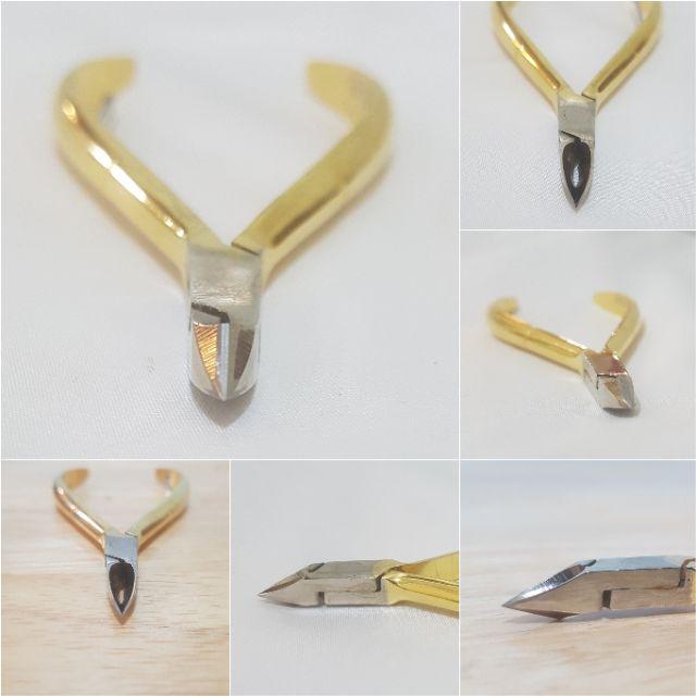 Thiết kế mạ vàng có 3 size lưỡi Lưỡi kềm sắc mỏng, tinh xảo, độ chính xác cao nên được cắt chính xác gọn gàng không làm tổn thương da khi cắt. Lưỡi kềm bén