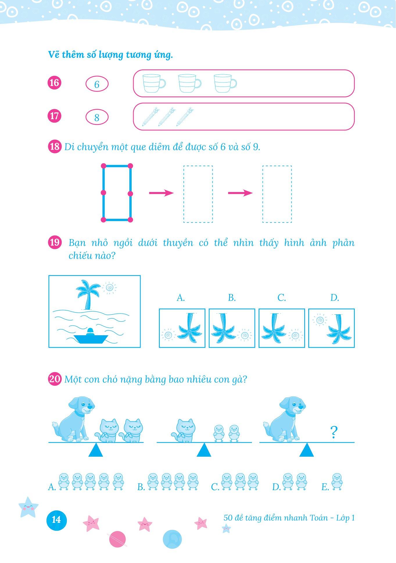 Để giúp các em củng cố kiến thức và tự tin vượt qua những bài thi môn Toán, chúng tôi hân hạnh giới thiệu đến quý phụ huynh và các em học sinh cuốn sách “50 Đề Tăng Điểm Nhanh Toán Lớp 1”.