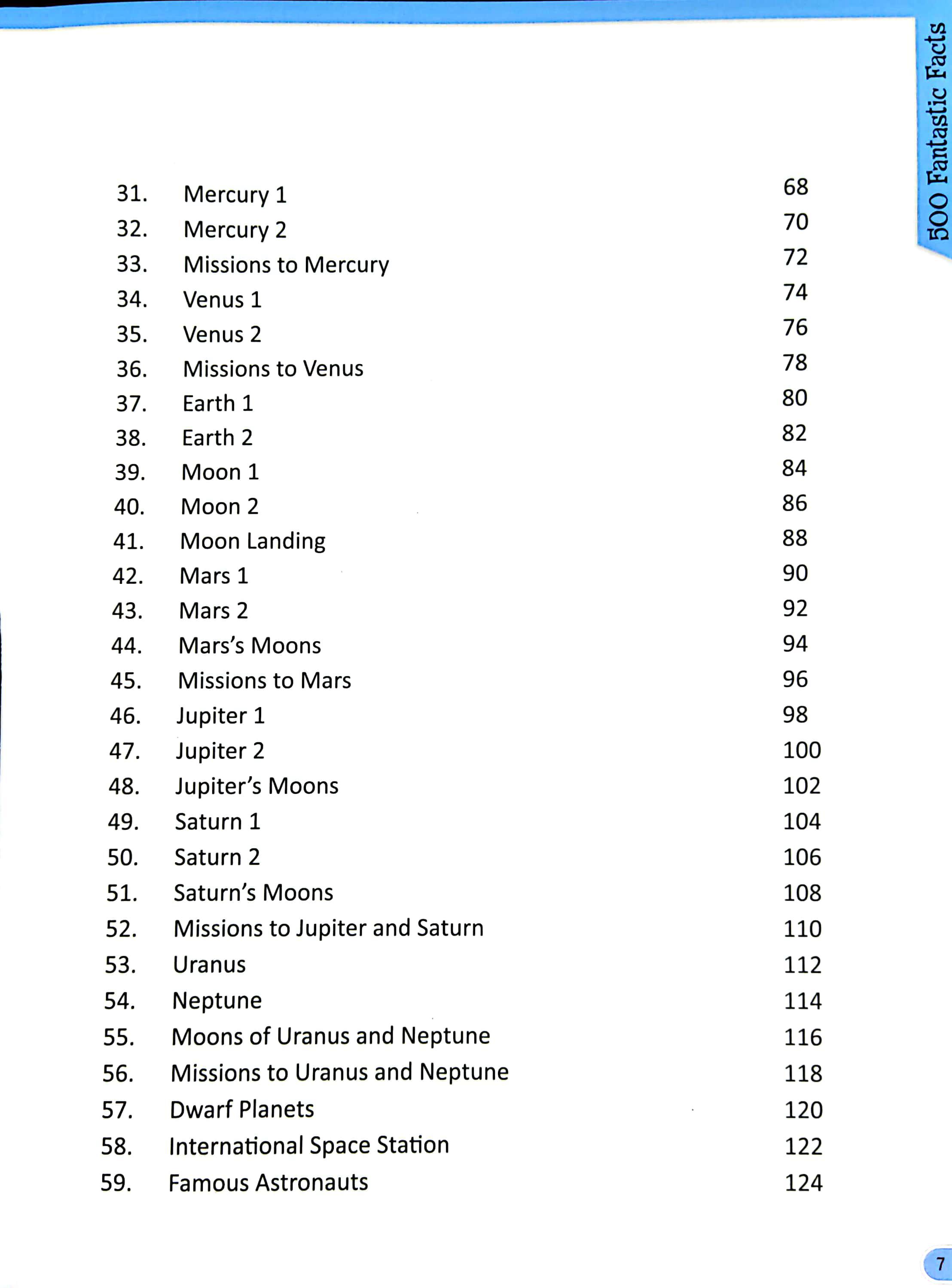 Discover the wonders of space with this amazing pictorial reference guide and fact-packed introduction to our solar system and beyond. Embark on a discovery of 500 fantastic facts which will fascinate and educate children of all ages.