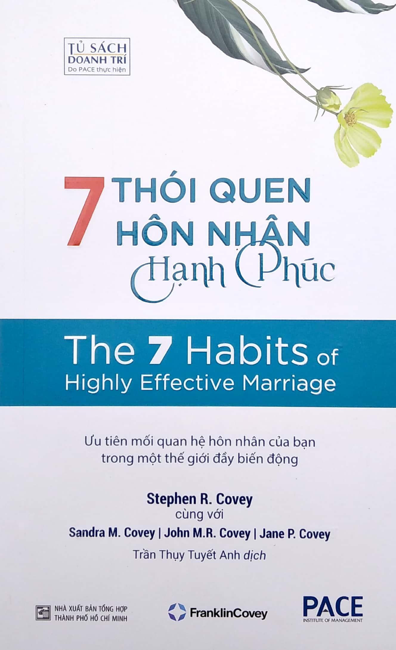 7 Thói quen hôn nhân hạnh Phúc - The 7 Habits of Highly Effective Marriage được viết bởi Tiến sĩ Stephen R. Covey cùng với Sandra M.R Covey, tiến sĩ John Covey và Jane Parish Covey. Quyển sách tập hợp những hiểu biết sâu sắc và những kinh nghiệm thực tiễn của các tác giả trong việc ứng dụng 7 Thói quen vào mối quan hệ lứa đôi và hôn nhân. Theo tiến sĩ Stephen R. Covey, các mối quan hệ gia đình có mối liên hệ mật thiết đến sức khỏe tinh thần của cá nhân và sự ổn định của toàn xã hội. Để các cặp đôi có thể đương đầu với những thử thách ngày một tăng, nếu chỉ có khát khao xây dựng một gia đình gắn kết thôi thì chưa đủ, các cặp đôi cần chú tâm đến những nguyên lý bất biến về tính hiệu quả: tư duy mới, những kỹ năng mới và những công cụ mới.