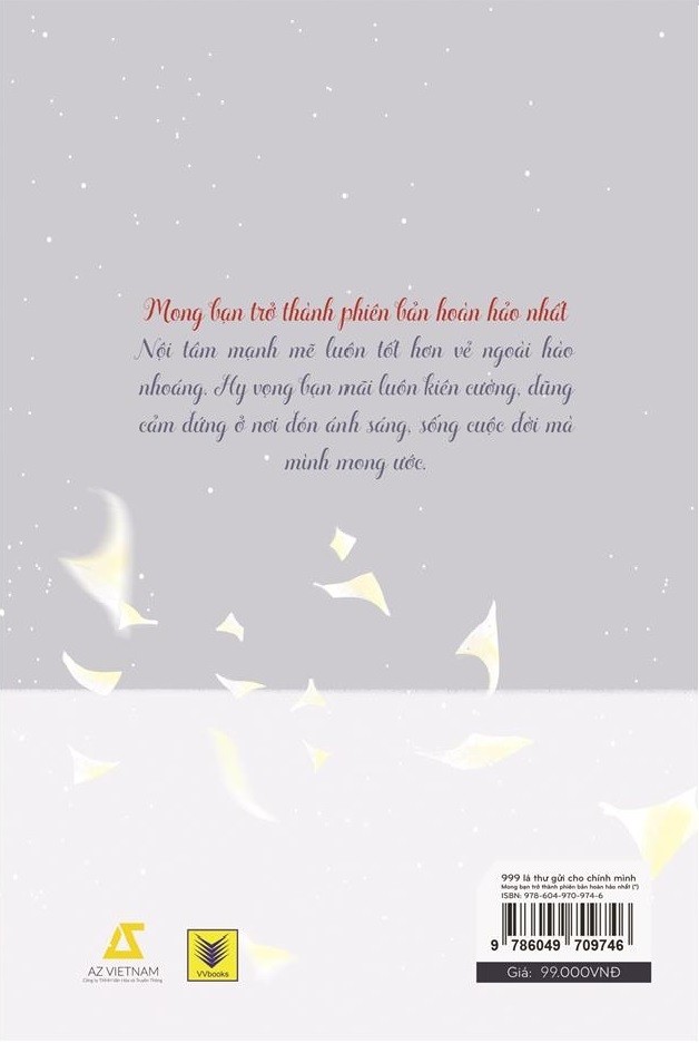 “999 lá thư gửi cho chính mình” – Mong bạn trở thành phiên bản hoàn hảo nhất. Cái gọi là vẻ đẹp nội tâm luôn luôn tốt hơn vẻ bề ngoài hào nhoáng, hy vọng bạn sẽ mãi luôn kiên cường, dũng cảm đứng ở nơi ánh sáng chiếu rọi, sống tốt một cuộc sống mà mình hằng mong ước.