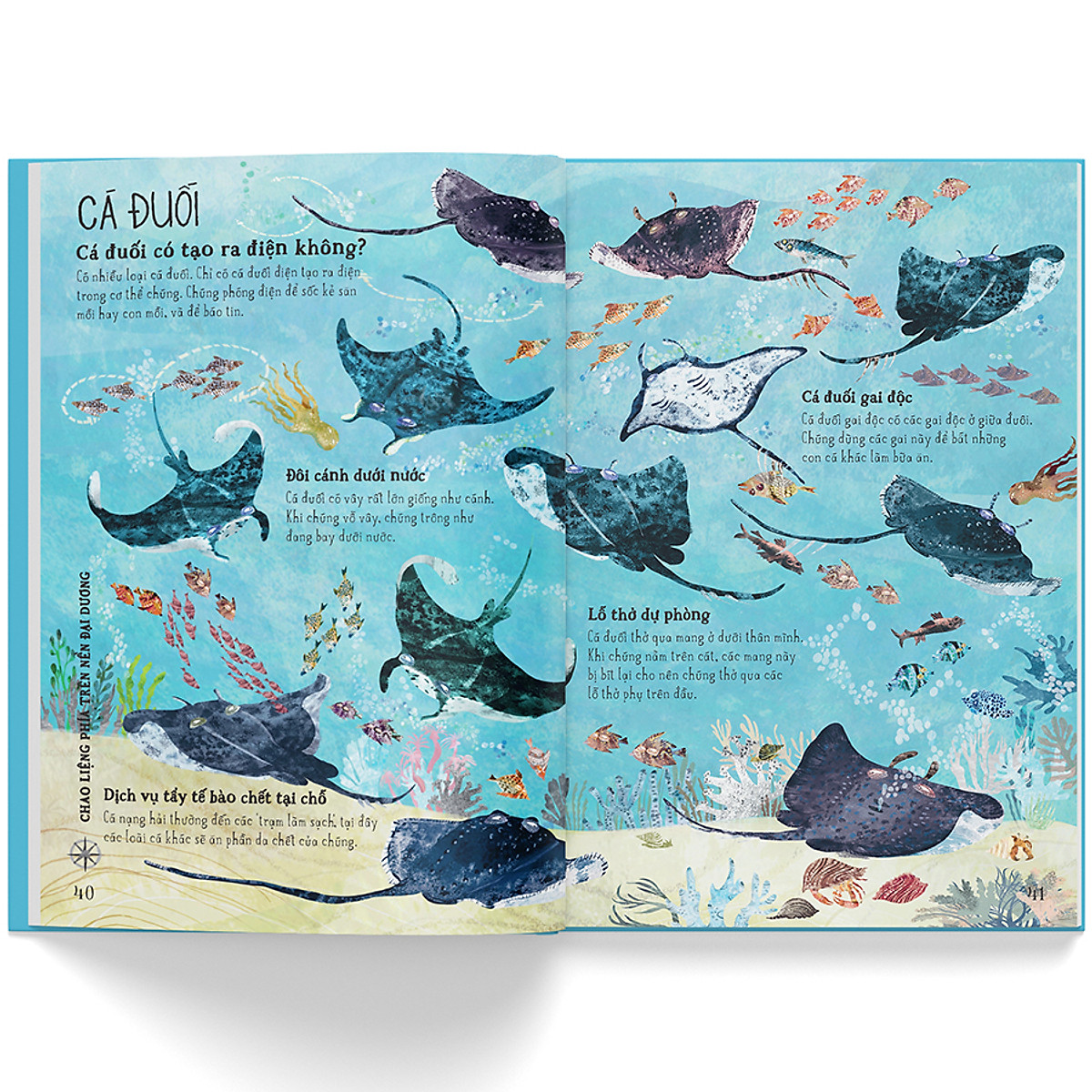 A LÊ HẤP! THẾ GIỚI BIỂN Tại sao cua lại bò ngang? Sứa có phải một khối thạch không? Vì sao chim cánh cụt không bị lạnh cóng? Và thật nhiều những câu hỏi về đại dương kỳ thú đang chờ bạn khám phá. Đừng quên chơi trò tìm hình nhé. Bạn có phát hiện ra các chú cá mòi đang ẩn nấp không? Hãy nhảy ngay vào A lê hấp! Thế giới biển để gặp gỡ các loài sinh vật biển trơn tuột, lung linh, đầy sức mạnh và bất ngờ. Bạn có tò mò về thức ăn và cách sinh tồn của các loài vật dưới đáy đại dương không?