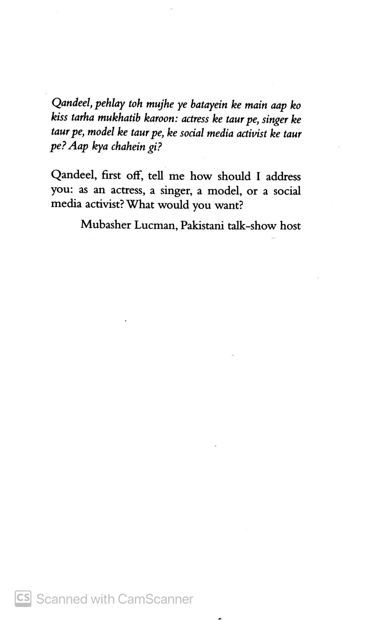 Drawing on interviews and in-depth research, Sanam Maher pieces together Qandeel's life from the village where she grew up in the backwaters of rural Pakistan, to her stint in a women's shelter after escaping her marriage, to her incarnation as a social media sensation and the Muslim world's most unlikely feminist icon.