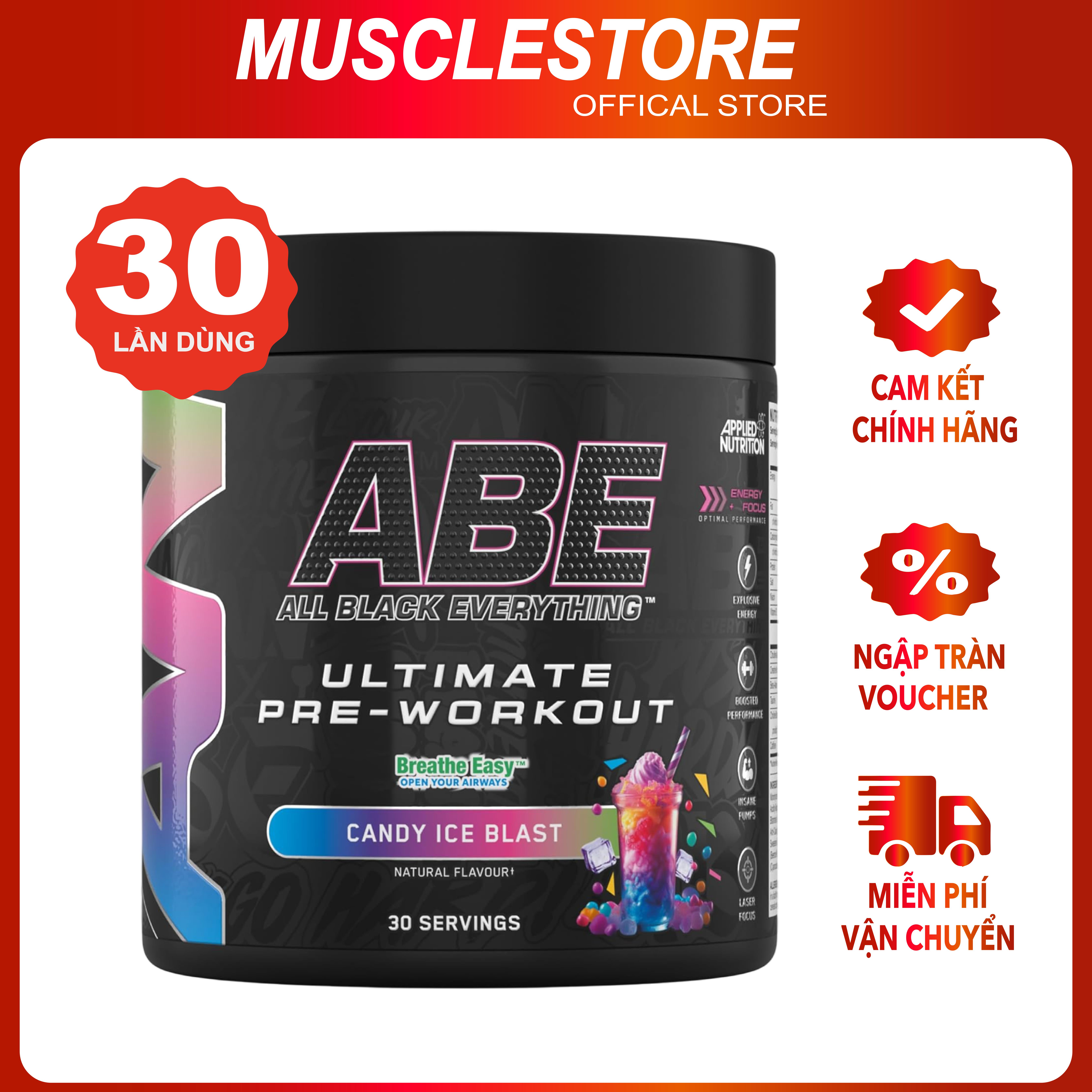 ✨ABE Pre Workout - Applied Nutrition (30 Lần Dùng), Tăng Sức Mạnh Sức Bền, Tỉnh Táo Tập Trung Trước Tập