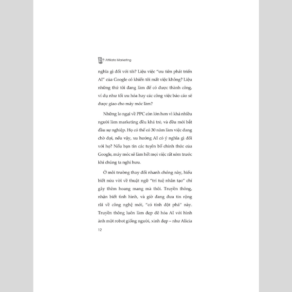 Trong cuốn sách này, Frederic Vallaeys, cựu nhân viên của Google AdWords, sẽ cung cấp những hướng dẫn chuyên môn về AI và các kiến thức để có thể xây dựng chiến lược liên kết tiếp thị hiệu quả. Bạn sẽ học được bộ kỹ năng để có thể sinh tồn trong thế giới quảng cáo đầy cạnh tranh và hãy nhớ rằng: trực giác và óc sáng tạo của con người sẽ luôn là thành phần thiết yếu cho một chiến lược quảng cáo thành công.