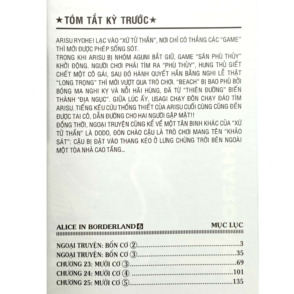 Arisu Ryohei tự nhận mình là một thành phần “ăn hại xã hội”, học hành lẹt đẹt nên đang cực kỳ chán đời. Trong một lần tụ tập than vãn cùng hai thằng bạn thân Karube và Chota, cả ba bất chợt nhìn thấy pháo hoa, và sau đó là một vụ nổ long trời lở đất. Khi bụi đất lắng xuống, họ nhận ra mình đang ở trong một thế giới hoàn toàn khác. Ở nơi này, Arisu, Karube và Chota bị buộc phải tham gia liên tiếp vào những trò chơi chết người do một thế lực nào đó áp đặt, nếu không muốn bị trừng phạt bằng cái chết. Liệu 3 người bạn của chúng ta có thể vượt qua và sống sót trong một thế giới đầy nguy hiểm như thế?