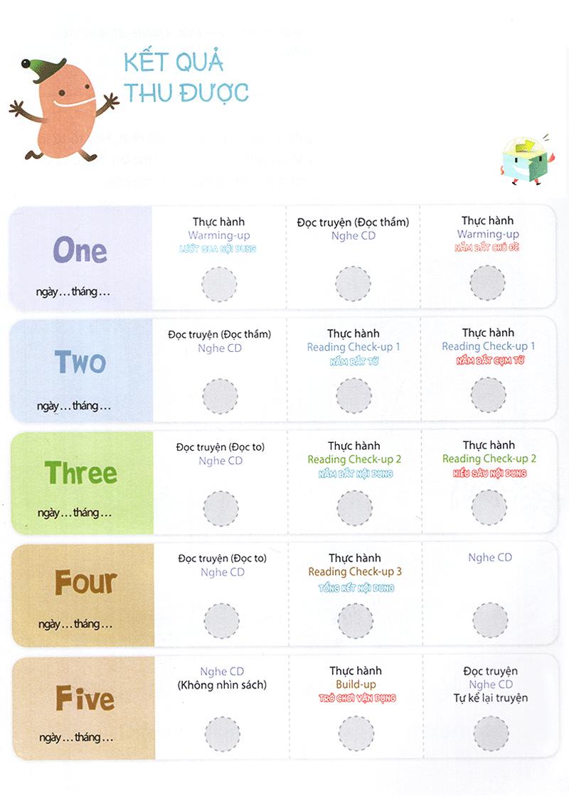 Trong đó, trình độ 1 gồm 24 cuốn – 12 cuốn sách truyện và mỗi cuốn sách truyện sẽ đi kèm với 1 cuốn thực hành, củng cố kiến