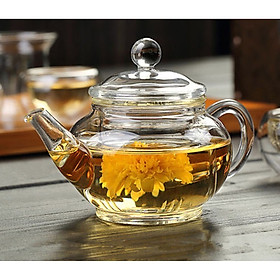 Bộ ấm trà thủy tinh chịu nhiệt được thiết kế với kết cấu ổn định, thủy tinh láng bóng không hấp thụ hương vị của trà giúp dùng có thể thưởng thức được toàn bộ