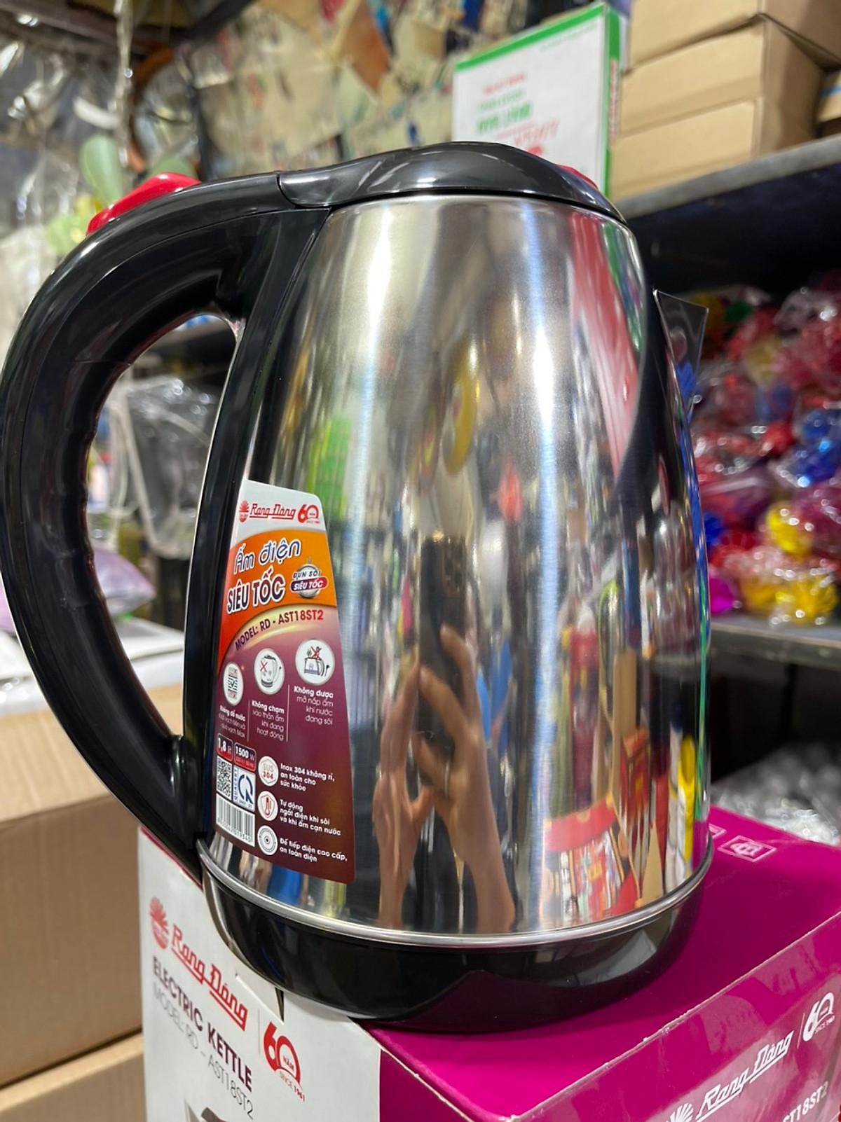 ưu điểm nổi bật của ấm siêu tốc đun nước rạng đông RD-AST18ST2 - Thân ấm được làm bằng inox, (chất liệu inox cao cấp nhất hiện nay được dùng để sản xuất các loại nồi cao cấp như Fissler, Elmich hay Elo) an toàn thực phẩm cho người sử dụng và có thẩm mĩ cao - Nắp, quai, đáy và đế nguồn làm băng nhựa,PP nguyên sinh, đảm bảo tuyệt đối ATVSTP. - Thân và đế được thiết kế có thể quay tròn 360° dễ dàng và thuận tiện khi sử dụng. - sản phẩm có công suất 1300w, giúp bạn đun sôi nước nhanh chóng hơn và bộ phận bảo vệ chống rò điện, quá nóng & chống cạn nước. - Tự động ngắt khí nước sôi tràn do đổ quá vạch max quy định, đảm bảo an toàn cho người sử dụng. - Có bộ phận bảo vệ chống rò điện, quá nóng và chống cạn nước.