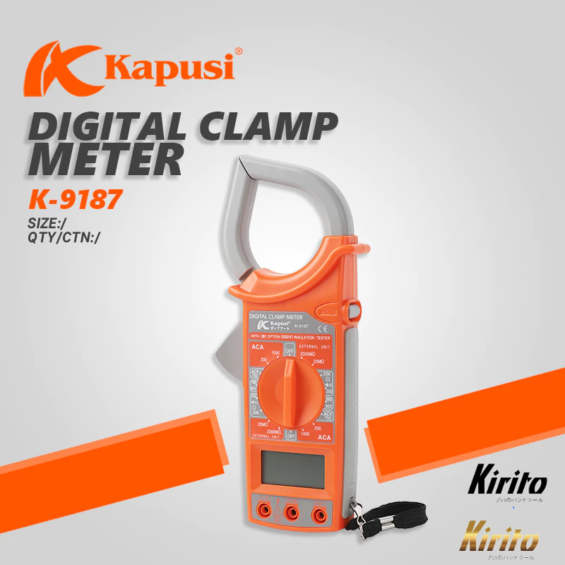 MÔ TẢ SẢN PHẨM Ampe kềm đo điện hãng Kapusi • Thương hiệu Kapusi Japan • Model: K-9186 • Tất cả sản phẩm đều được đóng dấu kiểm định chất lượng (QC) trước khi xuất