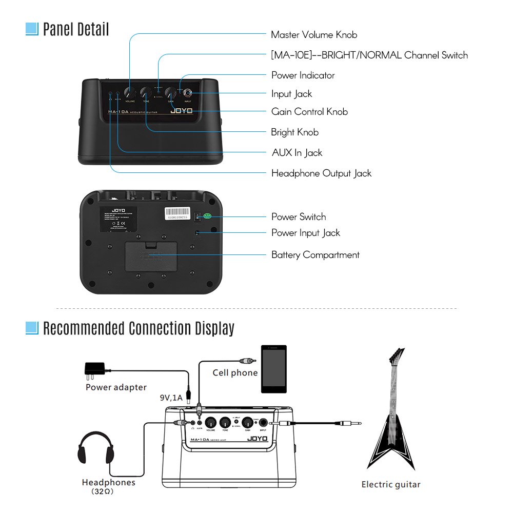 ✨Ampli khuếch đại âm thanh cho đàn guitar Acoustic, guitar Bass, guitar Electric Joyo MA-10A, MA-10B, MA-10E (JOYO guitar Amplifier) - Hàng chính hãng