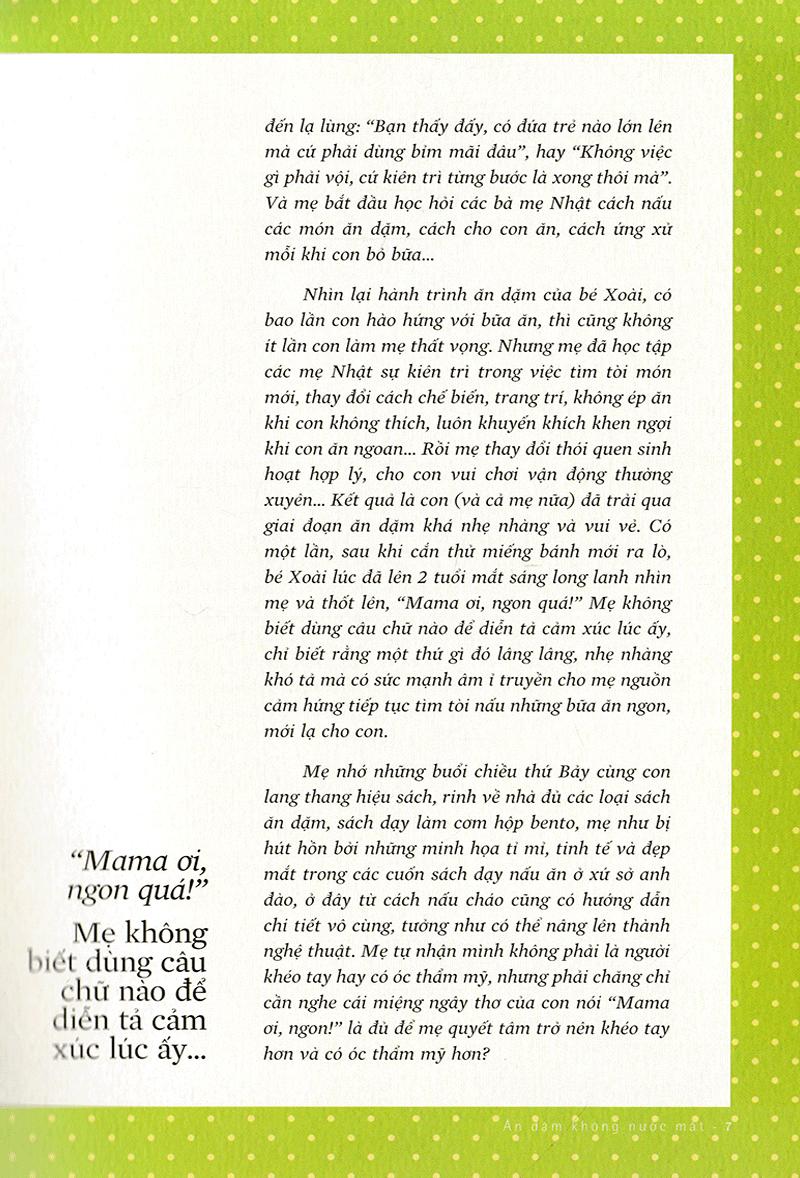 1. Ăn dặm không nước mắt Thế nào là ăn dặm không nước mắt? Là khi con không khóc vì bị ép ăn và mẹ không khóc vì con bỏ bữa. Là khi con hào hứng