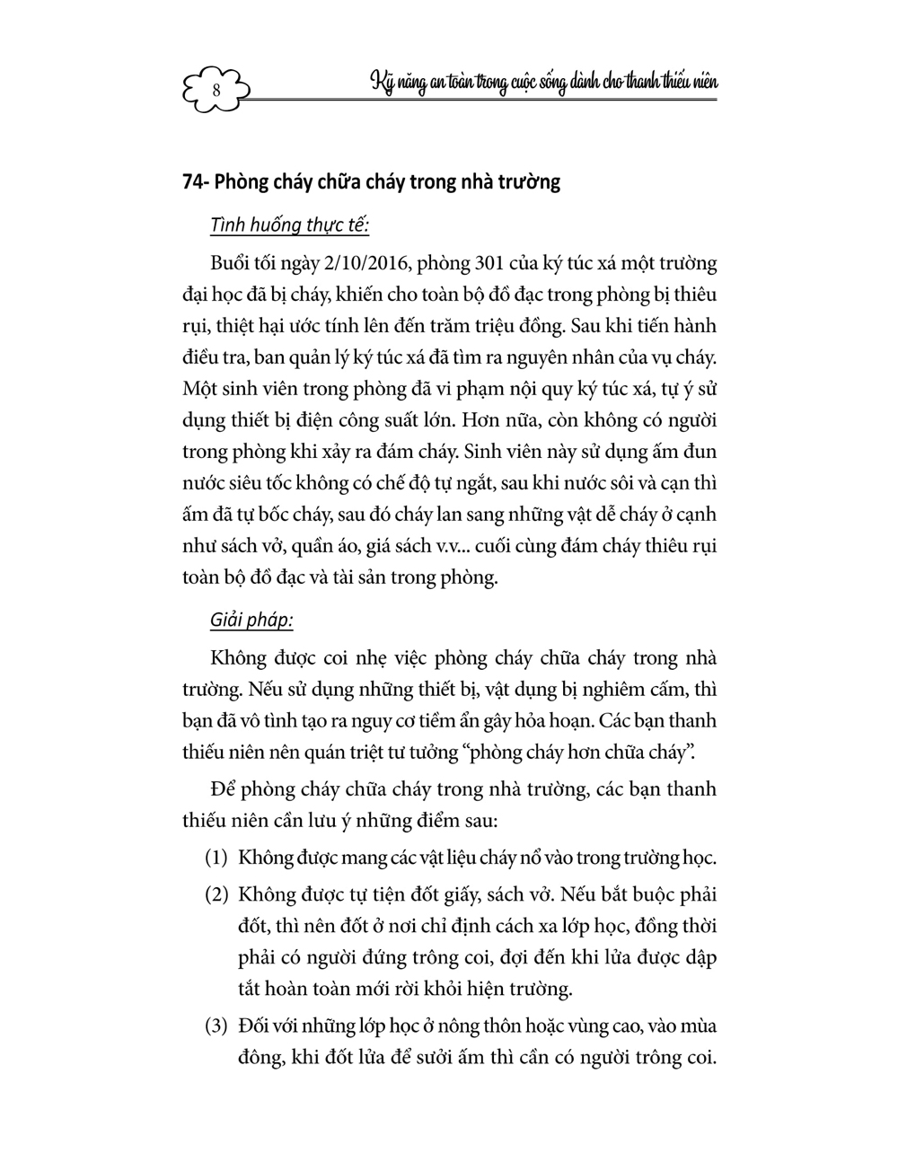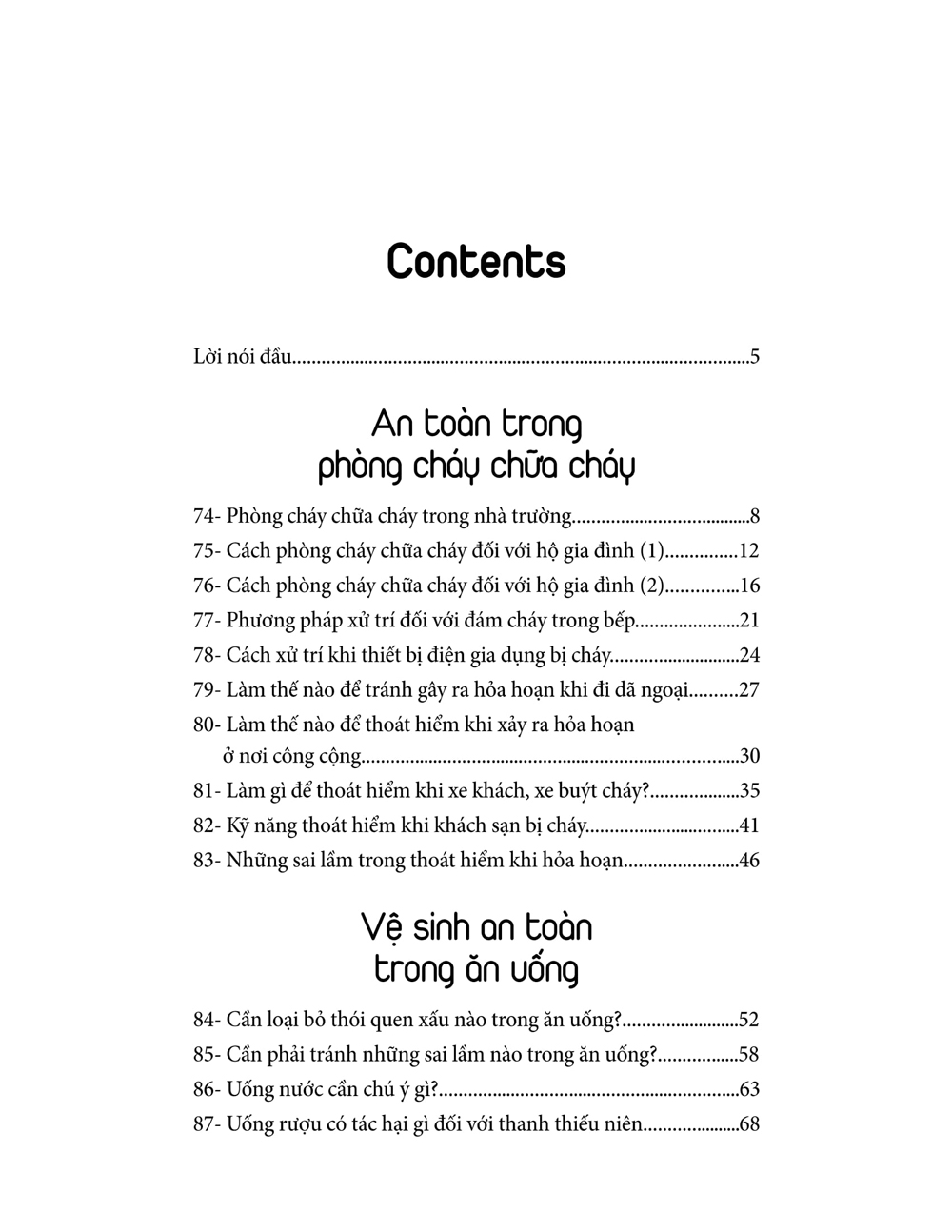 An toàn trong ăn uống và sơ cấp cứu cung cấp những kiến thức về phòng cháy chữa cháy cũng như kỹ năng thoát hiểm an toàn, những kiến thức về vệ sinh an toàn thực phẩm, đề phòng bị ngộ độc thức ăn, cách ăn uống một cách khoa học để trưởng thành một cách khỏe mạnh, một số kỹ thuật sơ cấp cứu giúp bảo toàn tính mạng cho nạn nhân, người thân và chính bản thân mình.