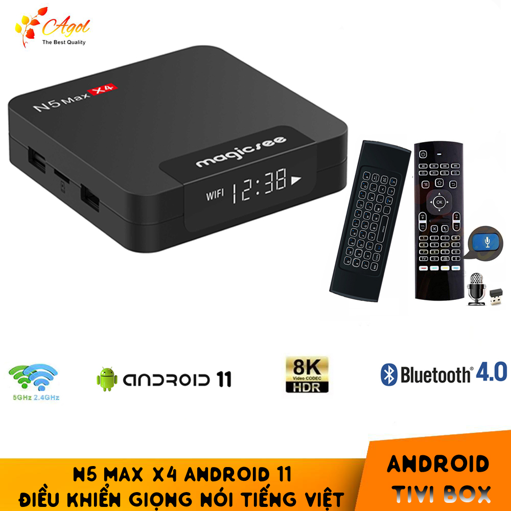 AGOL SHOP XIN GIỚI THIỆU SẢN PHẨM Android tivi box MAGICSEE N5 MAX X4 Ram 4G Android 11 điều khiển giọng nói kiêm bàn phím chuột bay có đèn nền dual wifi 2 băng tần bluetooth