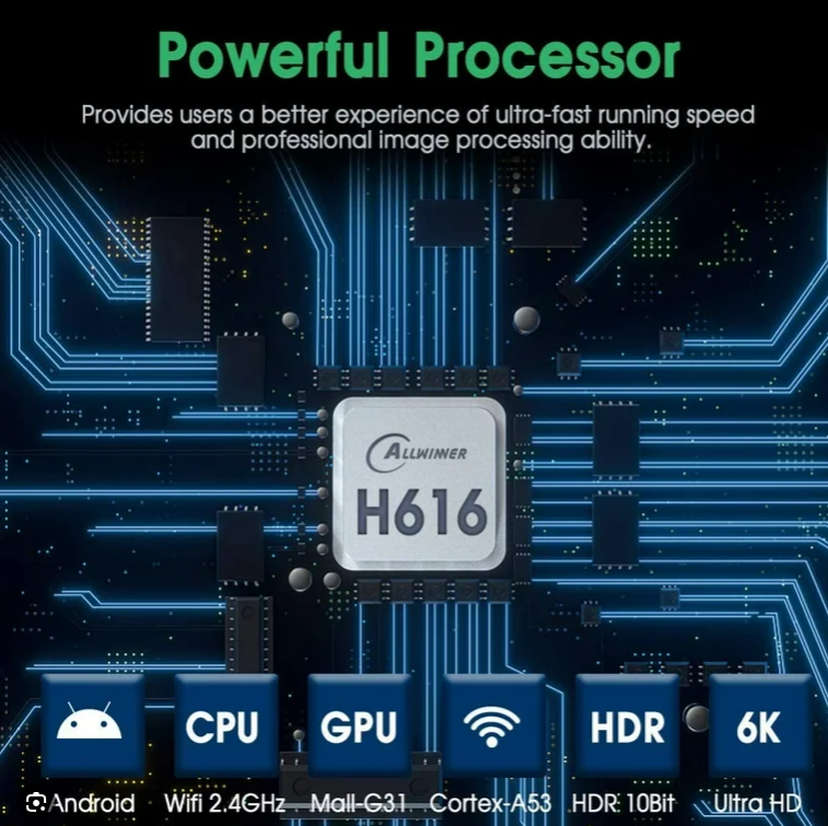 - Sử dụng con chip CPU Allwiner H616 cực mạnh
