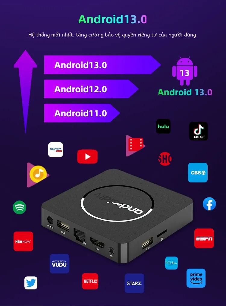 **Hỗ trợ tư vấn sản phẩm ** Ưu điểm Q Pro ATV - Seri TX9 1. Hệ điều hành nâng cấp lên Android TV 2. Sử dụng con chip CPU Allwiner H616 cực mạnh 3.