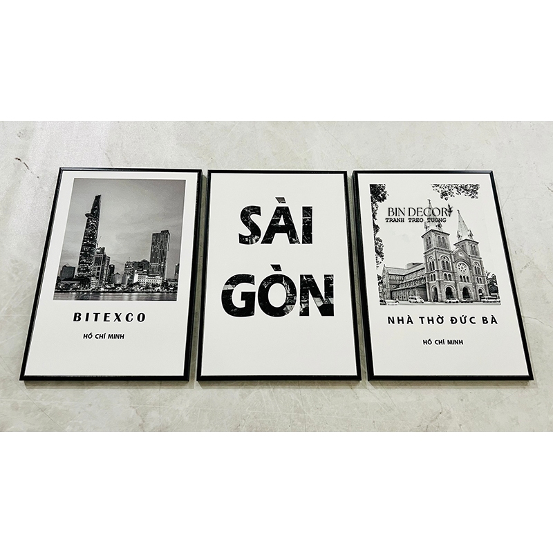 Tranh treo tường cảnh sài gòn - Kích thước của tranh : Kích thước : Size 1: 30x45cmx2 tấm+45x65cmx1 tấm Size 2: 40x60cmx2 tấm + 60x80x1 tấm Size 3:50x70cmx2 tấm + 70x90x1 tấm - Chất