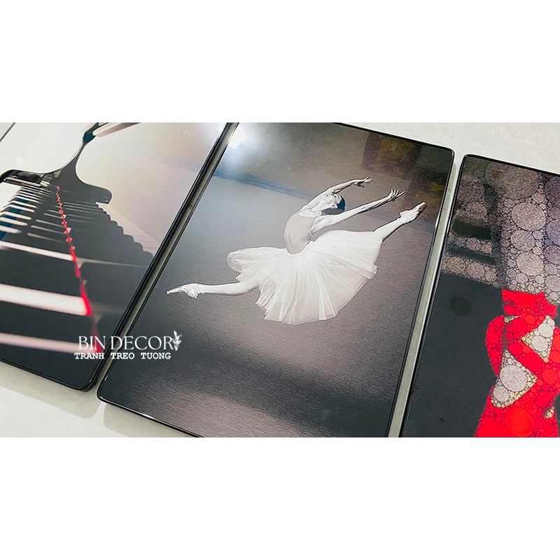 Tranh treo tường trang trí âm nhạc và múa ba lê - Kích thước của tranh : 25x35cmx3 tấm 30x45cmx3 tấm 40x60cmx3 tấm - Chất liệu : Tráng gương - Kim Sa - Khách hàng
