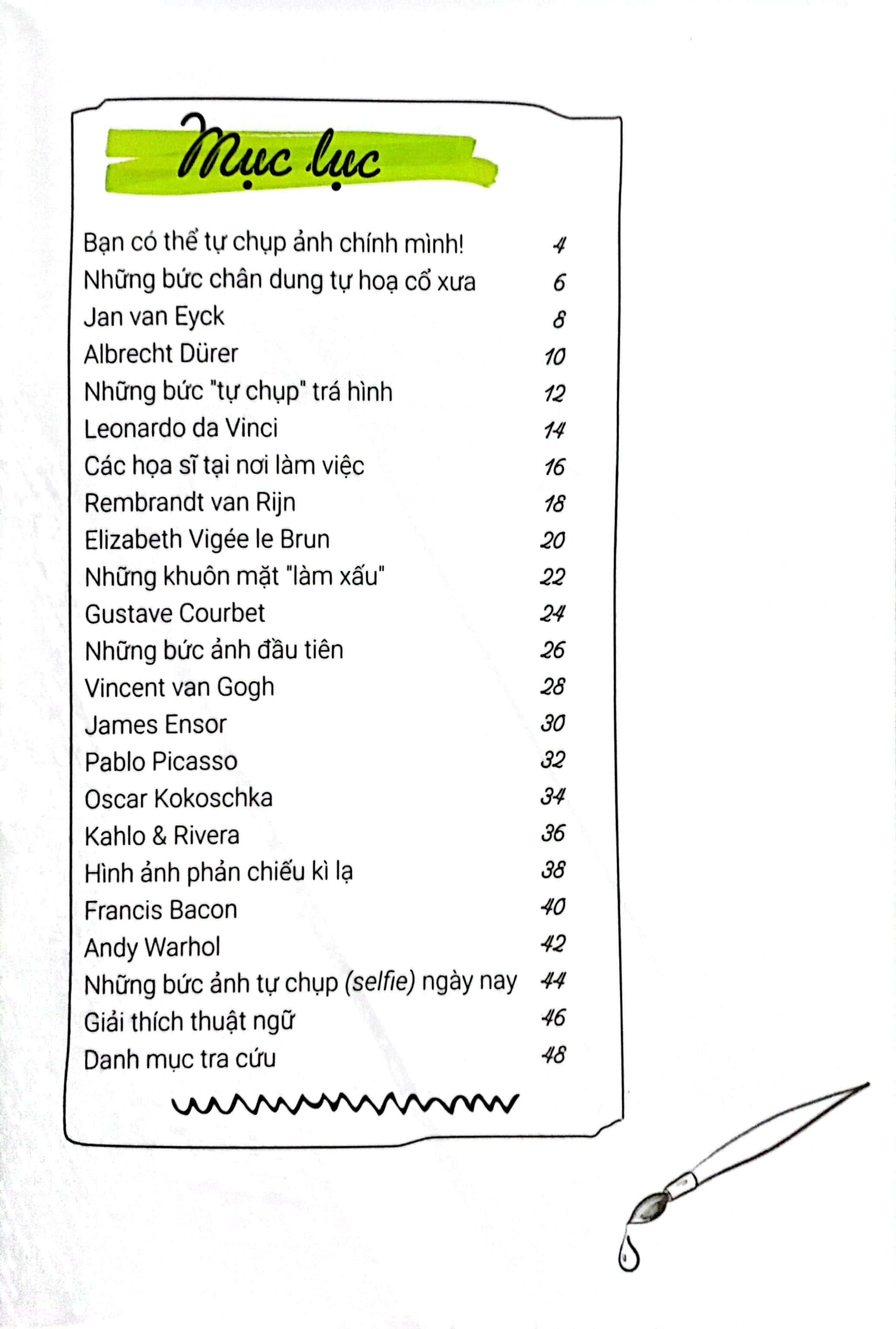 Đáp: Không phải những người mang họ Kardashian đâu! Giờ đây ảnh tự chụp đã trở thành một phần trong cuộc sống thường nhật của chúng ta. Vậy nghệ thuật này đến từ đâu? Ai đã phát minh ra chúng? Và tại sao? Hãy lật giở từng trang sách và tìm câu trả lời! Đồng thời, bạn sẽ khám phá ra vài thủ thuật và câu chuyện phía sau những bức chân dung tự hoạ nổi tiếng đấy!