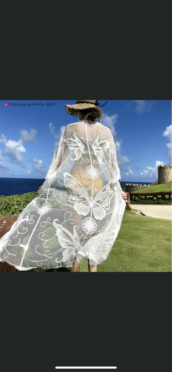 Áo choàng Voan thêu Ren bikini đi biển đi chơi